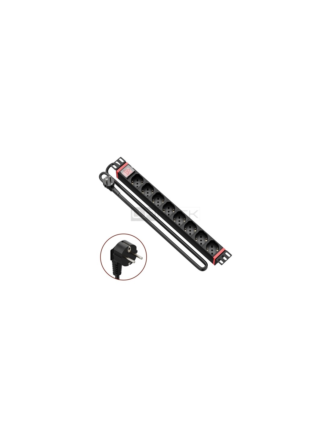 Las unidades de distribución de energía (PDU) para rack de 19 distribuyen la energía de la red a varios dispositivos. WP RACK ofrece una amplia selección de PDU en un perfil de aluminio de alta calidad. Con sus dimensiones compactas de solo 1 U de alto y 45 mm de profundidad, se puede integrar fácilmente en el rack. Fuente de alimentación. Proporciona energía de CA a servidores, equipos y dispositivos conectados a través de una unidad de distribución de energía. Cubierta protectora del interruptor. Evita el apagado accidental de la energía Enchufes y tomas de red. Las tomas de corriente rotadas a 45 para un uso eficiente en espacios reducidos garantizan una distribución eficiente de la energía en entornos industriales o de TI exigentes a servidores, equipos y dispositivos conectados. Cable de alimentación de entrada largo. Alcanza fuentes de energía distantes, lo que permite colocar la PDU donde se necesita. Soportes de montaje giratorios. Permiten la instalación de la PDU en las siguientes configuraciones: 1U de montaje horizontal de 19. 0U (montaje vertical, debajo del mostrador y en la pared) Construcción de aluminio duradera y de alta calidad. Protege los componentes internos y resiste daños por impacto o abrasión en entornos industriales hostiles. También extiende la vida útil del producto. Características: -Cuerpo de aluminio -8 salidas escriba / L (10/16 A) híbrido F Schuko -Horizontal rack de 19 montable (1.5 unidad) -Interruptor de encendido con luz y cubierta safetey -Protección del Niño -Tensión máxima: 250V / 3500W -Cable: H05VV-F 3G 1,5 mm2 - 2 mt. -Tipo de enchufe: E / F híbrido