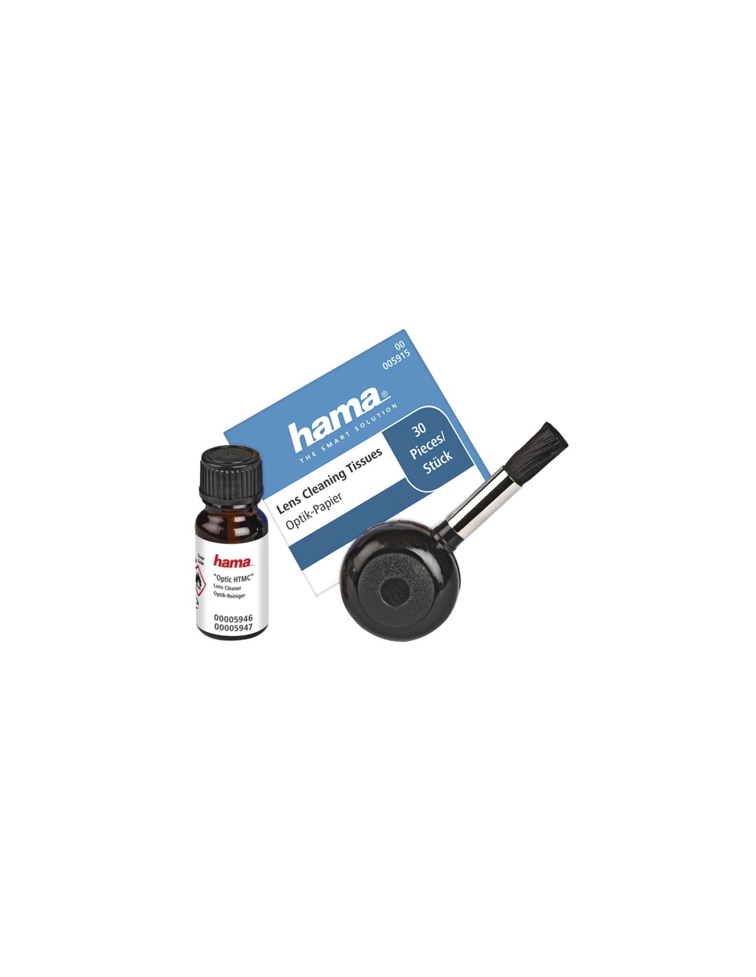Hama Set de Limpieza para Camaras - Cepillo - Soplador - Limpiador Liquido - Hojas de Papel Fino - Incluye Bolsa - Color Negro