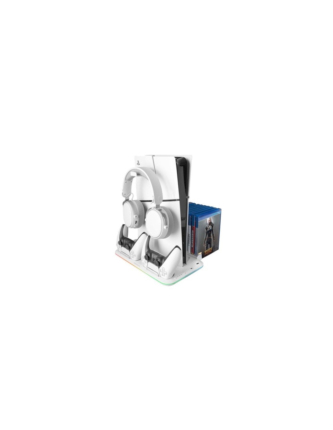 El soporte multifunción RGB para PS5 MPS5-B2 es el accesorio de juego todo en uno perfecto. Combina refrigeración eficiente, iluminación RGB Neón, carga de mandos, puerto USB adicional, soporte para auriculares y almacenamiento de juegos en un solo lugar. Compatible con las consolas PS5 Slim, estándar y Digital Edition, este soporte está diseñado para optimizar tu configuración de juego. Lleva tu experiencia de juego al siguiente nivel con el soporte multifunción MPS5-B2 Apoyado en su diseño innovador, el MPS5-B2 ofrece una solución completa para los jugadores que buscan eficiencia y estilo. Con su capacidad para cargar dos mandos simultáneamente, mantener la consola a una temperatura óptima y ofrecer una iluminación personalizable, este soporte es el complemento ideal para cualquier configuración de juego. Además, su compatibilidad con las versiones estándar y digital de la PS5 asegura que tu consola esté siempre segura y lista para usar. Características: -Potencia y compatibilidad total con PS5 Slim y PS5, en versiones estándar y digital. -Carga dual para gamepads con indicadores LED para verificar el estado de carga. -Refrigeración eficiente y silenciosa con ventilador integrado. -Iluminación NEÓN RGB dinámica con múltiples modos de iluminación. -Soporte para auriculares integrado para mantenerlos siempre a mano. -Organizador de juegos con capacidad para hasta 15 juegos. Especificaciones: Dimensiones y peso: -Dimensiones: 320x210x27 mm. -Peso: 486 g. Iluminación: -RGB Control con múltiples modos de iluminación. Compatibilidad: -PS5 Slim (Digital Disc) / PS5 (Digital Disc). Puertos: -Entrada: 1x USB-C. -Salida: 1x USB-A, 2x USB-C (Mandos). Ventilador: -Velocidad: 4500 -4700 -5000 200 RPM. Soporte: -Soporte de cascos: Hasta 55 mm de ancho. -Soporte caja de juegos: Hasta 15 juegos. Carga: -Tiempo de carga mandos: 3-4 horas. Energía: -Voltaje: 5V. -Corriente: 3A.