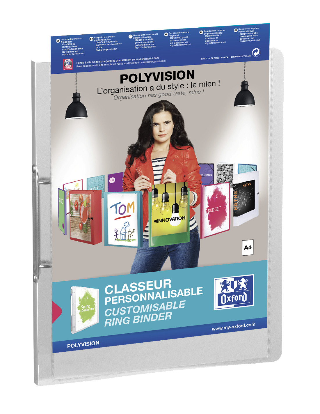 Oxford Polyvision A4 Carpeta de Anillas - Tapa de Plastico Personalizable - Lomo de 30mm - 2 Anillas de 20mm - Transparente
