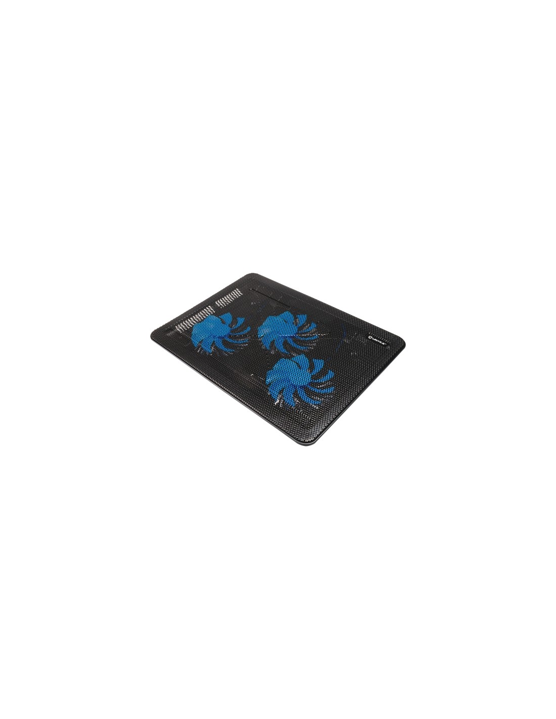 Base de refrigeraci n para port tiles de hasta 15\ 6 equipada con tres ventiladores LED azules. Dise o optimizado con pies plegables para elevar la superficie y 2 puertos USB. Estructura resistente de ABS y superficie de rejilla met lica. Especificaciones: -Dimensiones: 380 x 280 x 28 mm -Peso: 650 g -Meterial: ABS / Panel de Metal -Color: Negro / Azul -Compatibilidad: Port tiles 14 15 6 -Ventiladores: 3 x (110 x 110 x 15 mm) -Cojinete: Hidr ulico -RPM: 1100 10 -CFM: 39 -N ºmero de Aspas: 9 -Nivel de Ruido: 38 5dBA -Iluminaci n: Led Azules -Conexi n: USB x 2 -Cable: 80 cm Packaging: -Dimensiones: 400 x 290 x 40 mm -Peso: 850 g Contenido: -Base Refrigeraci n Port til / Cable / Manual