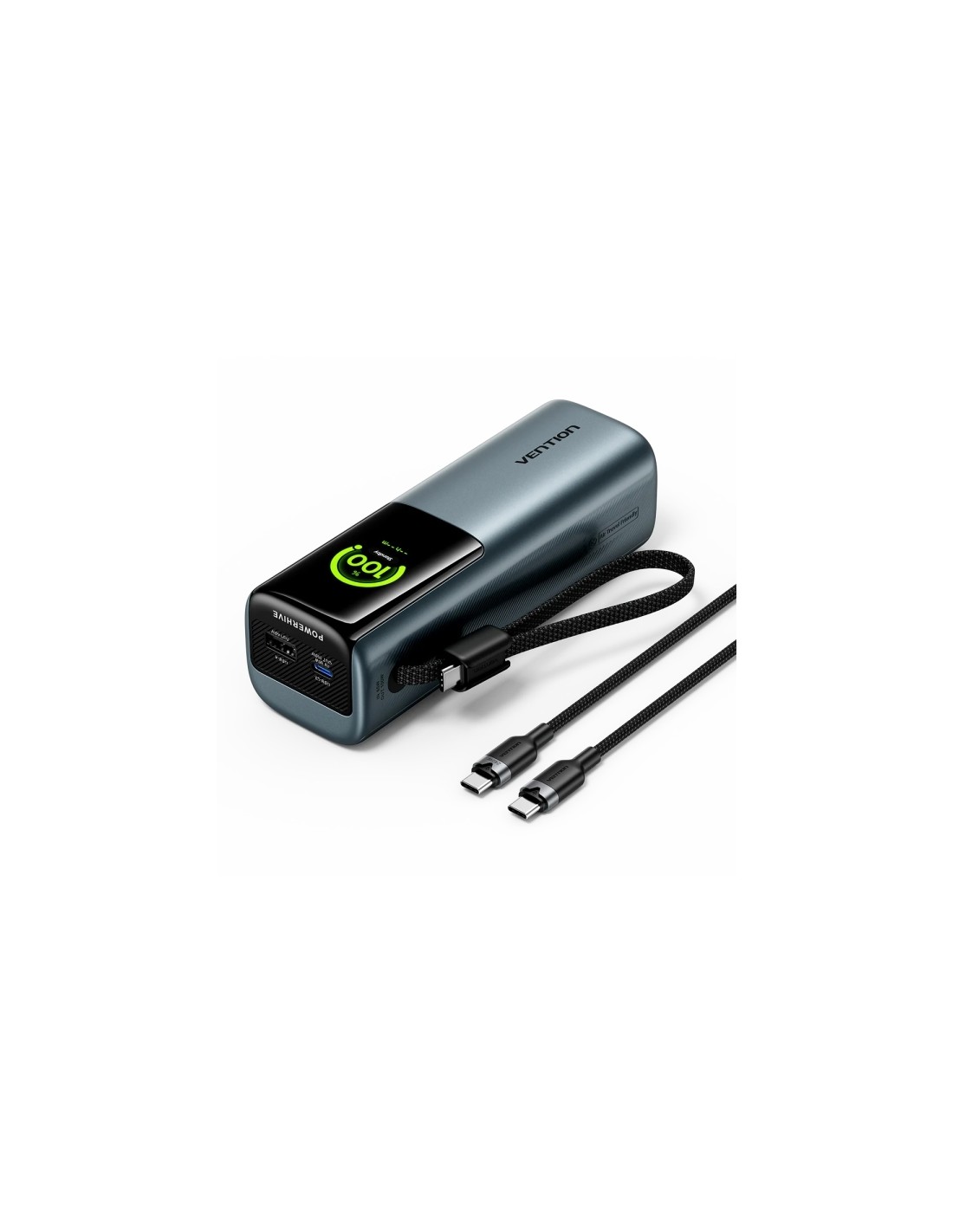 Vention Powerbank de 20000mAh - Potencia de Salida hasta 165W - Cable USB-C Integrado - Power Delivery - USB-A - USB-C -