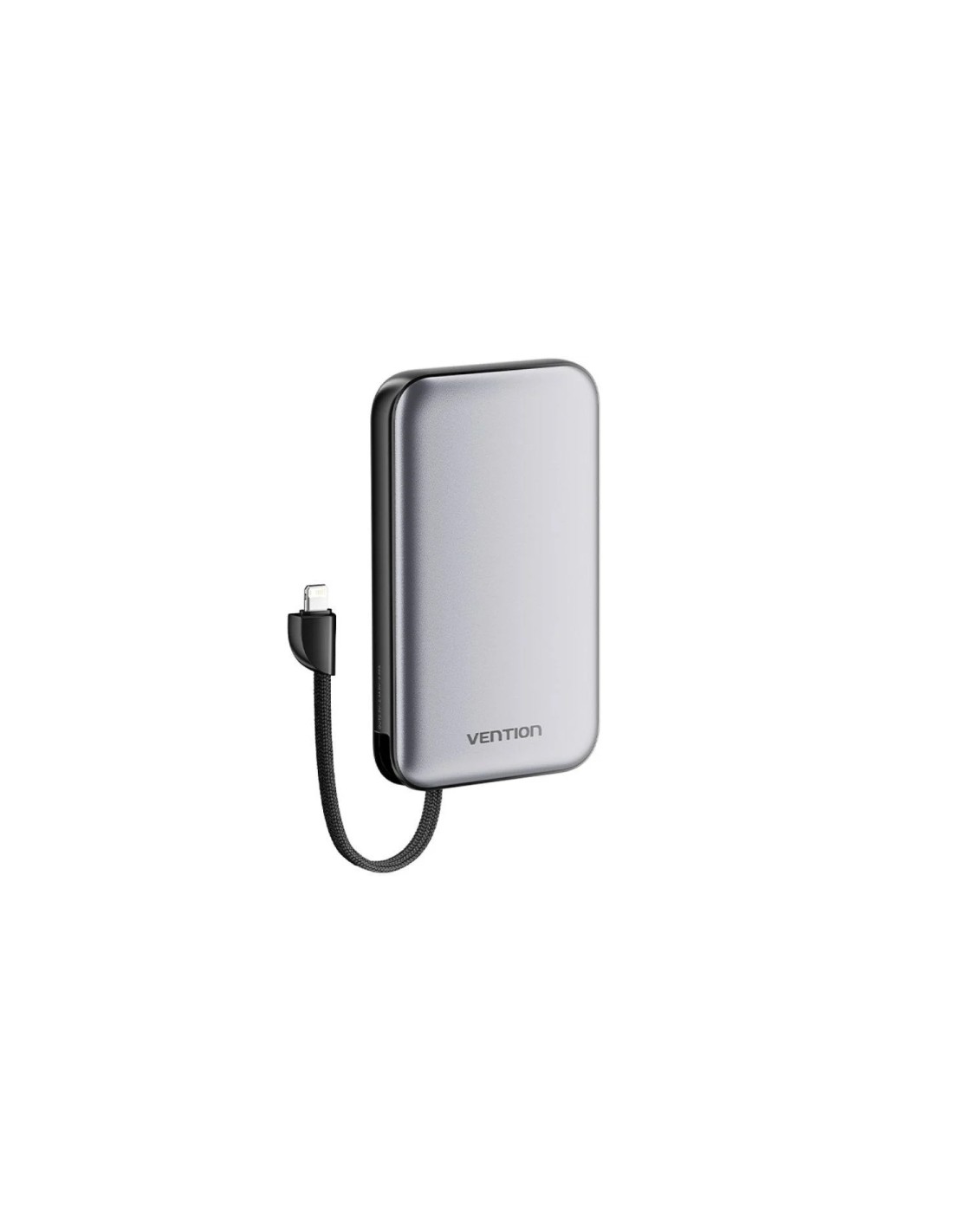 Vention Powerbank de 10000mAh - Potencia de Salida hasta 20W - Cable Lightning Integrado - USB-A - USB-C - Color Gris