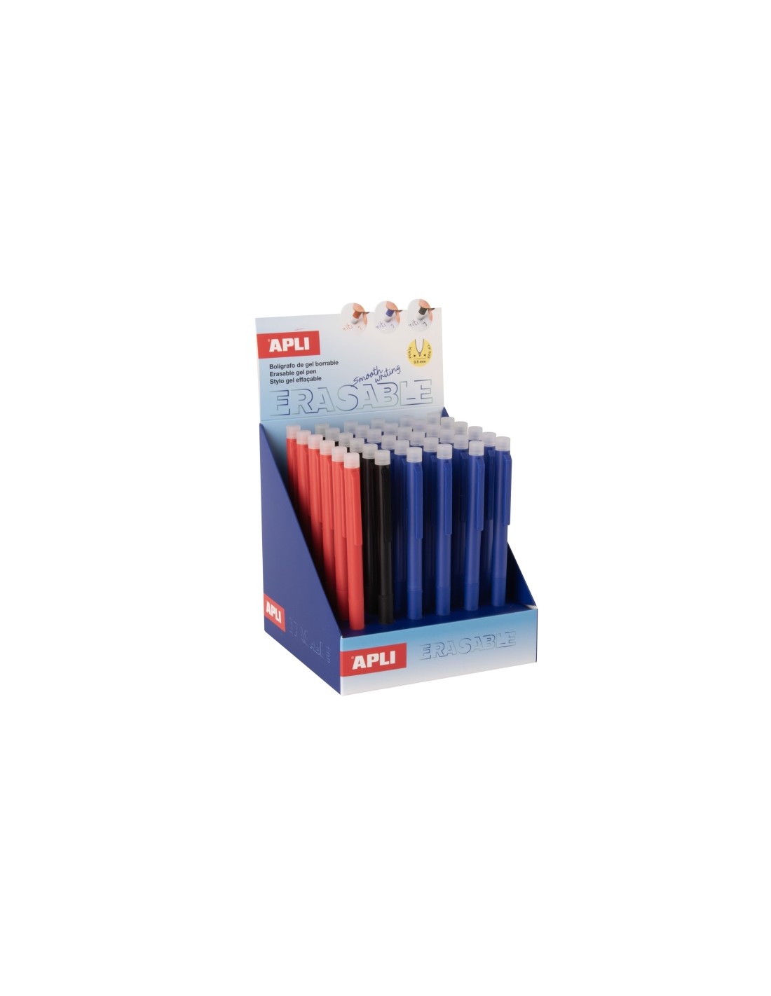 Apli Erasable Gel Expositor con 36 Boligrafos de Tinta Gel Borrables - Punta de 0 5mm - Zona de Agarre de Silicona - Colores