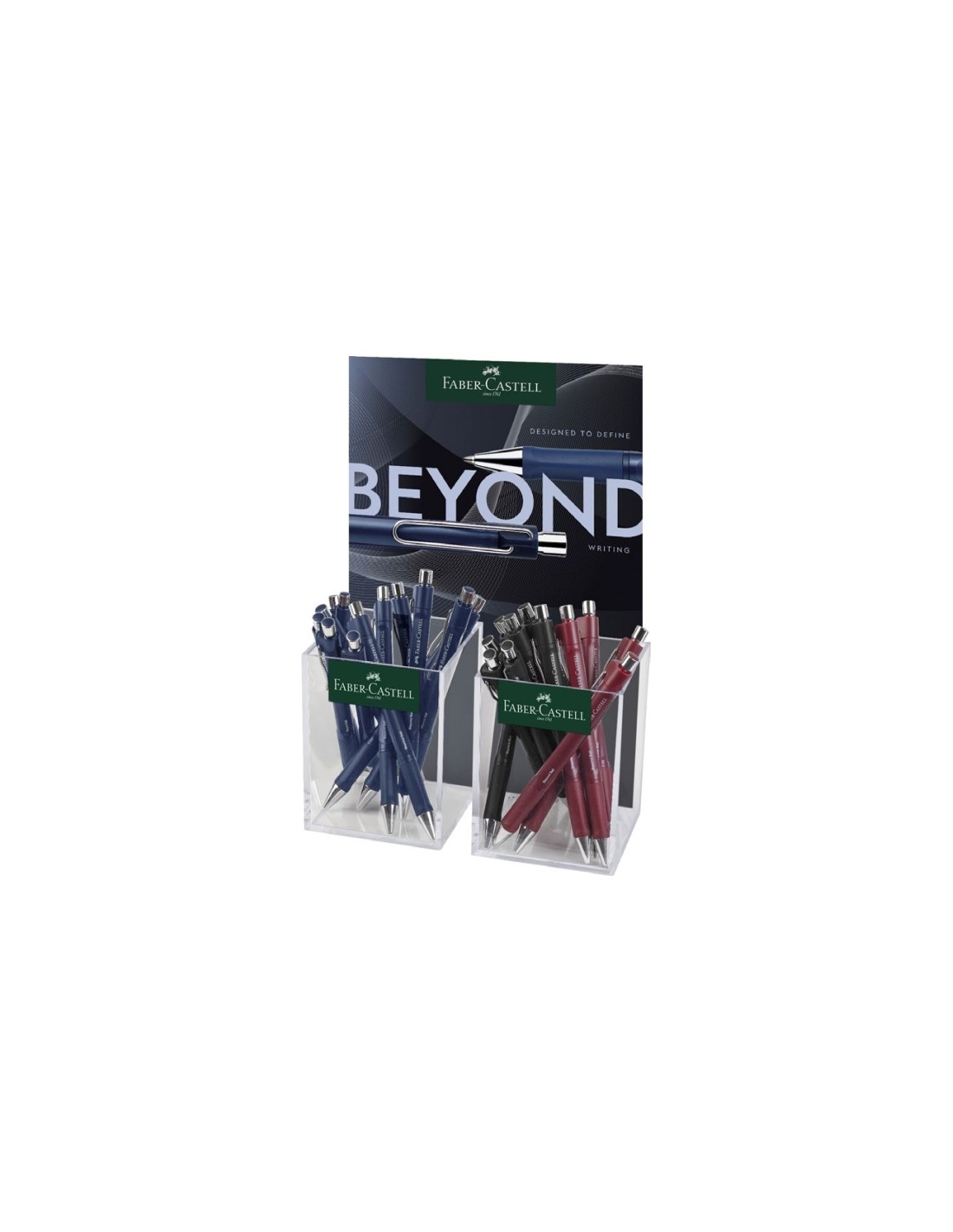 Faber-Castell Beyond Ball Expositor con 24 Boligrafos Retractiles - Punta 1mm - Trazo de 0.5mm - Grip de Agarre - Colores