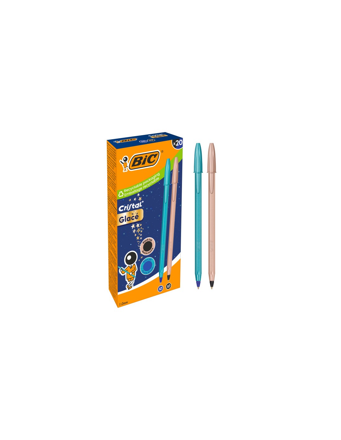 Bic Cristal Glace Pack con 20 Boligrafos de Bola - Cuerpo Opaco en Color Azul Metalizado Mate y Cobre Mate - Punta Redonda de
