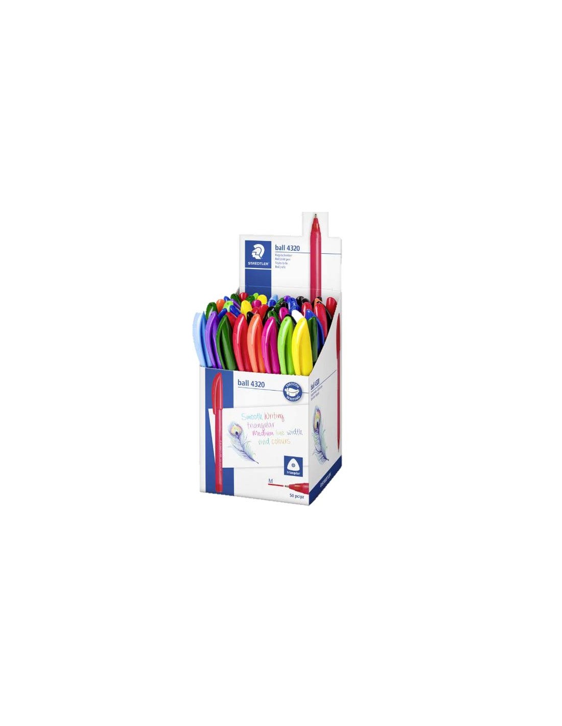 Staedtler Ball 4320 M Expositor con 50 Boligrafos Punta de Bola 1mm - Escritura Suave - Cuerpo Triangular - Colores Surtidos