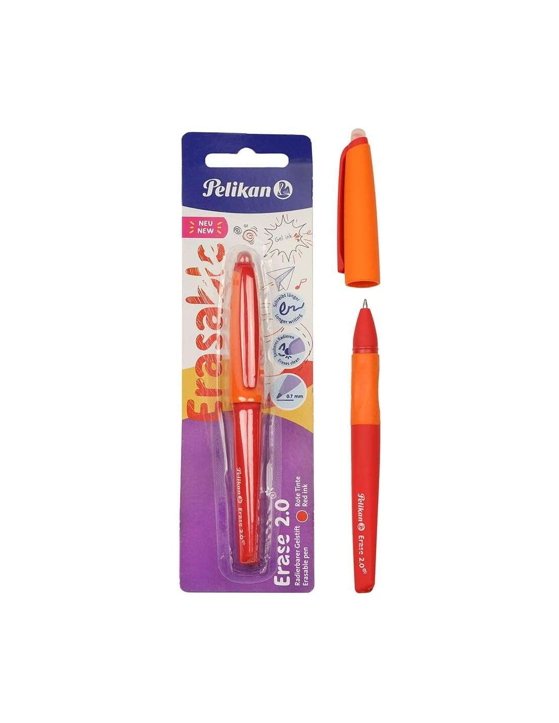 Roller Erase 2,0 Rojo Blister 1 pieza Empuñadura ergonómica antifatiga que permite sostener el bolígrafo de forma correcta de inmediato Duración larga de la tinta, Cuerpo del mismo color de escritura Diseño fresco y divertido