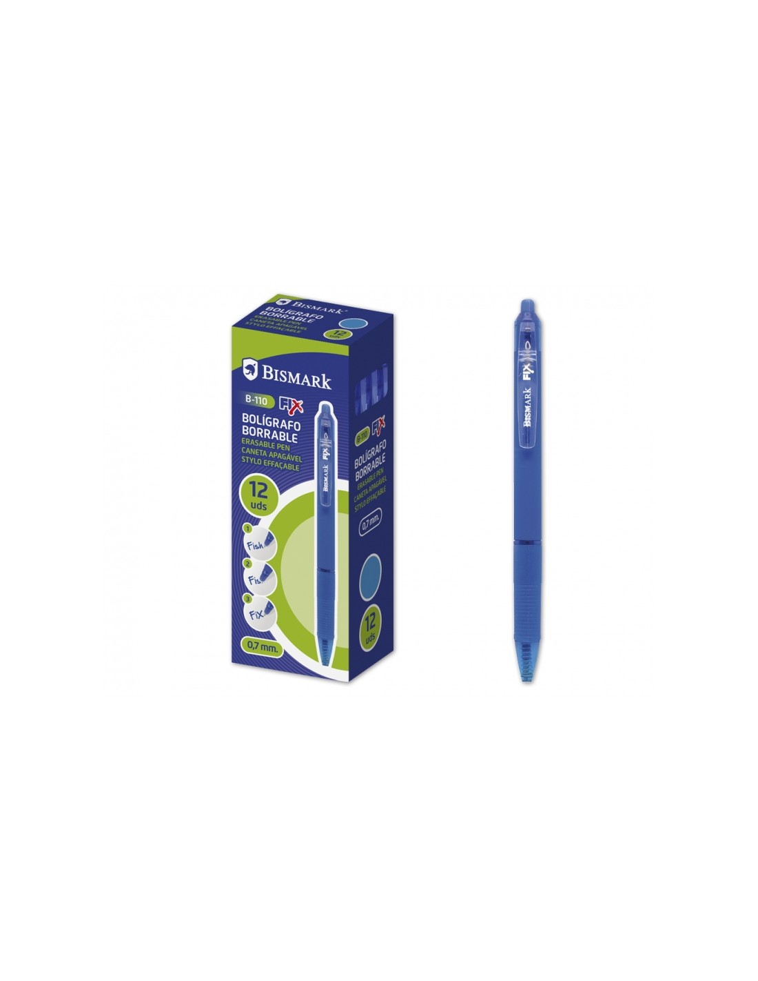 BOLIGRAFO BORRABLE BISMARK C/CLIP AZUL CJ 12 Características: -Bolígrafo Borrable -Color Azul -En caja 12 uds. -0,7 mm