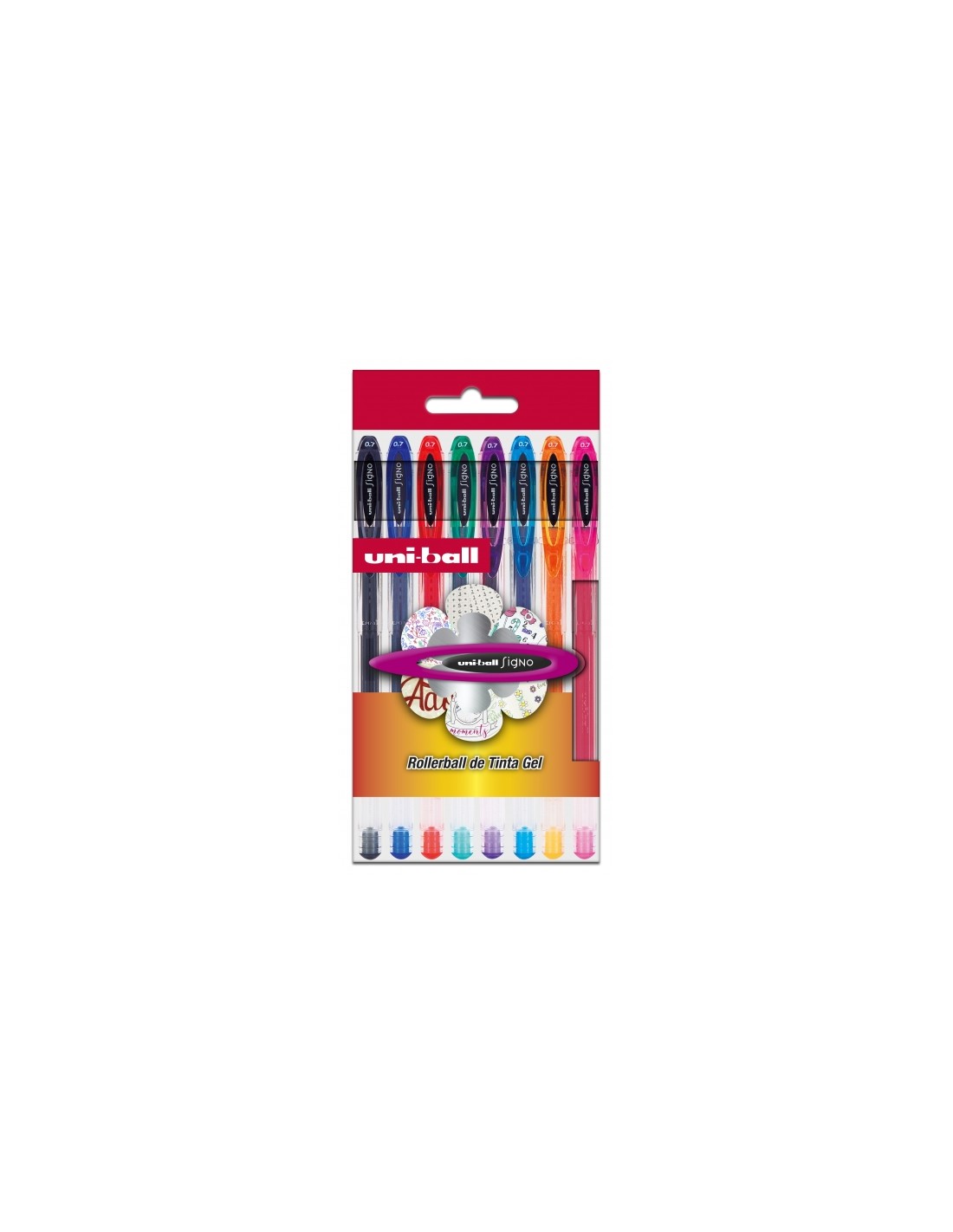 Uni-ball Signo básicos -ESTUCHE UM-120 BASICO 8P 0,7mm Características: -Punta de acero inoxidable -Bola de 0,7 mm de carburo de tungsteno -Cuerpo de plástico -La mejor gama de roller de tinta gel en colores básicos -Tinta pigmentada resistente al agua y a la luz. Tiene una duración de 5 años -Clip exclusivo uni-ball