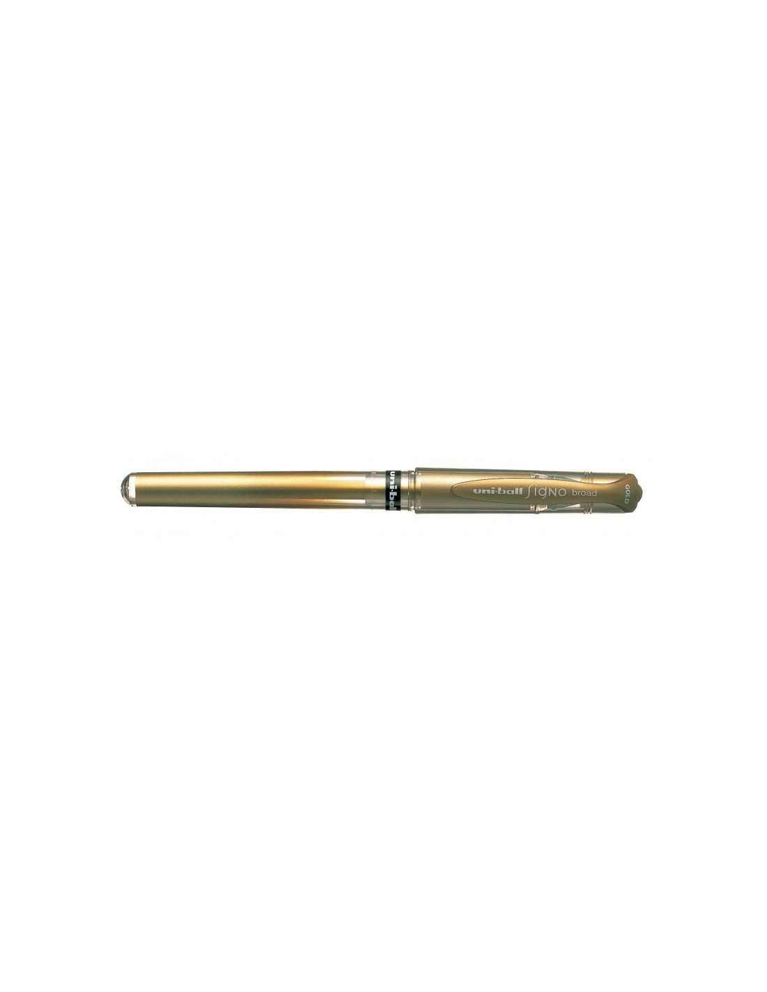Uni-ball Signo Broad -UM-153 Oro 1,0mm Características: -Punta de acero inoxidable -Bola de 1,0 mm de carburo de tungsteno -Cuerpo de plástico -Código color en clip y zona de sujeción -Este roller de tinta gel es único, su trazo es diferente y da la sensación de escribir con pluma estilográfica, ideal para dar un toque personal a tu escritura. El acabado es de lujo con sujeción de caucho protegida -La tinta tiene una duración de 5 años