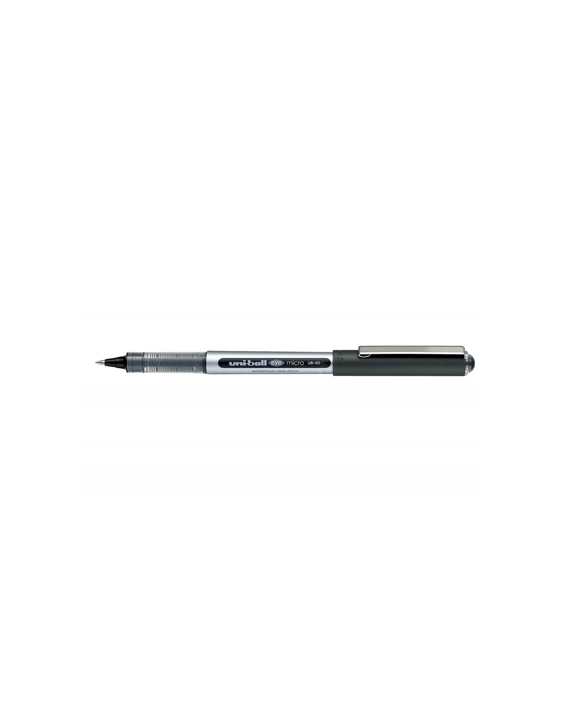 Uni-ball eye micro -UB-150 Negro 0,5mm Características: -Punta de acero inoxidable -Bola de 0,5 mm de carburo de tungsteno -Cuerpo de plástico -Código de color en capuchón y puntera -Tinta pigmentada de gran resistencia al agua y a la luz, su exclusivo sistema de control de tinta, además de evitar el goteo, le confiere una increíble suavidad de escritura, incorpora una ventana para controlar el nivel de tinta -Con clip metálico