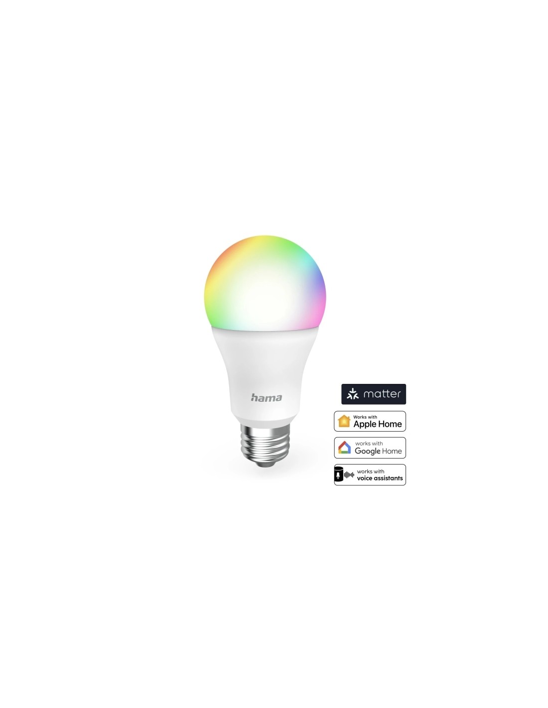 La bombilla LED WLAN inteligente Hama combina tecnolog a avanzada y comodidad para transformar cualquier espacio en un ambiente personalizado y acogedor. Con una potencia de 9W y una capacidad de emitir hasta 806 l ºmenes, ofrece una iluminaci n brillante y eficiente que puede ajustarse f cilmente a tus necesidades, desde una luz suave y relajante hasta un brillo intenso para actividades espec ficas. Su dise o en formato E27 y su temperatura de color ajustable entre 2700 y 6500 K permiten crear diferentes ambientes, ideales para cada momento del d a o la ocasi n, con una amplia gama de m s de 16 millones de colores para elegir. Gracias a su compatibilidad con el est ndar Matter y su conexi n WiFi directa, esta bombilla no requiere de un concentrador adicional, facilitando su integraci n en cualquier sistema dom tico. Solo necesitas escanear el c digo QR para a adirla autom ticamente a tu red inteligente y controlarla desde la app Hama Home, disponible para controlar la iluminaci n desde cualquier lugar, ya sea en casa o en movimiento. Adem s, su compatibilidad con asistentes de voz como Alexa, Google Assistant y Siri permite gestionar la iluminaci n mediante comandos de voz, haciendo que la experiencia sea a ºn m s c moda y moderna. Su tecnolog a LED de alta calidad y su ndice de reproducci n del color RA de 81 garantizan una iluminaci n con colores vivos y precisos, adem s de una larga vida ºtil de aproximadamente 15.000 horas. La bombilla es regulable y ofrece diferentes efectos de luz, permitiendo crear ambientes ºnicos y adaptados a cada momento. Con un dise o compacto y protecci n IP20, es perfecta para uso en interiores en espacios secos, aportando eficiencia energ tica y facilidad de uso en un sistema de hogar inteligente que se puede ampliar con otros productos Hama Smart Home. Caracter sticas: -Color de Luz: RGBTW - ndice de reproducci n del color RA (m n.): 81 -Transmisi n de la Se al: WiFi - ngulo del haz de luz: 320 -Clase de eficiencia energ tica: F -Color de luz regulable: Si -Consistencia del color: 6 -Consumo de energ a ponderado: 9 kWh/1000h -Efecto estrobosc pico (para LED y OLED) MLS: 0.056 -Factor de eficiencia el ctrica de la bombilla (m n.): 0.04 -Flujo Luminoso ºtil ( 360): 806 lm -Potencia en modo Encendido (Pon): 9 W -Radiado M xima potencia de Transmisi n: 0.1 W -Tecnolog a de iluminaci n utilizada: L mpara LED -Vida ºltil nominal: 15000 h -Asistente de voz: Amazon Alexa/Apple HomeKit/Google Home -Equivalencia con una L mpara Incandescente: 60 W -Portal mparas: E 27 -Protecci n: IP20 (Cuartos Secos) -Regulable: Si -Regulaci n/Atenuaci n: App/Voz -Temperatura de Color: 2700 -6500 K -Dise o / Di metro / Altura: L mpara Incandescente / 60mm / 110 mm -App Control: Hama Home -Uso Recomendado: Home Assistent -El producto est sujeto a la Ley de Datos de la UE: Si -Control de datos personales: App -Formato de los datos relacionados con los datos personales: JSON -La rotaci n del almacenamiento es continua, en tiempo real y personalizada: Si -La ubicaci n de almacenamiento es un dato personal: Cloud -Periodo de conservaci n de los datos personales: 365 Tage -Recopilaci n de datos personales: Si -Ciclo de almacenamiento: funcional/informativo y actualizado continuamente en tiempo real: Si -Control de datos: funcional/informativo: App -Formato de datos: funcional/informativo: JSON -Longitud m xima de datos (funcional/informativa): 15 KB -Ubicaci n de almacenamiento: funcional/informativa: Cloud