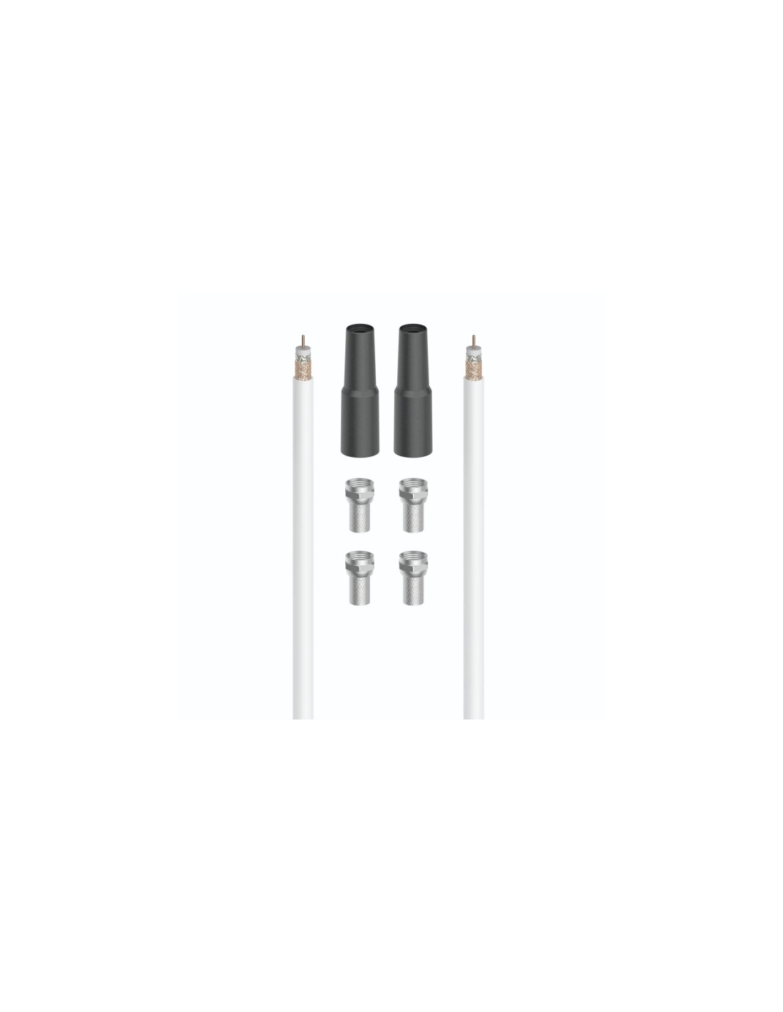 Hama Essential Set de Conexion Satelital con 7 Piezas - Cable Coaxial de 20m - Conector F x4 - 2 Fundas de Proteccion