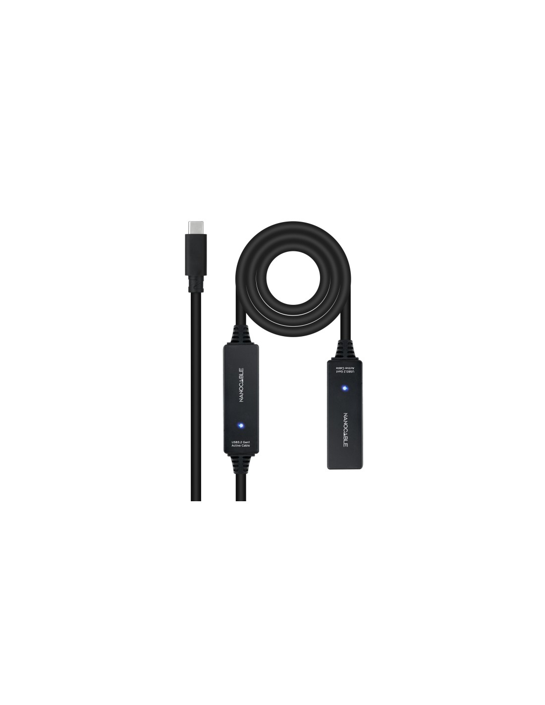 Nanocable Cable Prolongador USB-C 3.2 Macho a USB-C 3.2 Hembra - 10 Metros - Amplificador - Color Negro