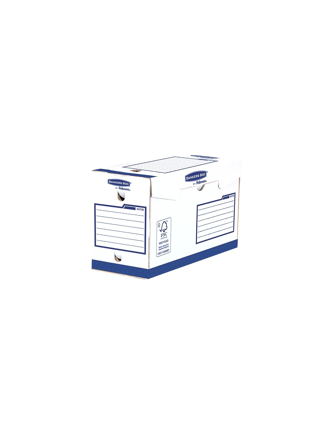 Fellowes Bankers Box Basic Pack de 20 Cajas de Archivo A4 Extra Resistente 150mm. Características: -Caja de archivo para documentos de tamaño A4 Plus Extra Resistente -Ideal para documentos tamaño A4 o A4 Plus (210x330mm) -Superficie para la etiqueta en la tapa y en el lomo -Fabricado con cartón 100 reciclado con certificación FSC y 100 reciclable -Dimensiones internas: Ancho 144 x Alto 244 x Profundo 330 mm Especificaciones: -Montaje: Manual -Color: Blanco / Azul -CRC: 44728 -Comprometidos con el Medio Ambiente: FSC -Dimensiones producto (Alto x ancho x profundo) cm: 25.30 x 15.00 x 34.50 -Referencia: 4472802 -Peso producto (Kg): 0.20 -Tamaño de papel: A4 -Unidades por embalaje: 1 -Código barras unidad: 043859702893