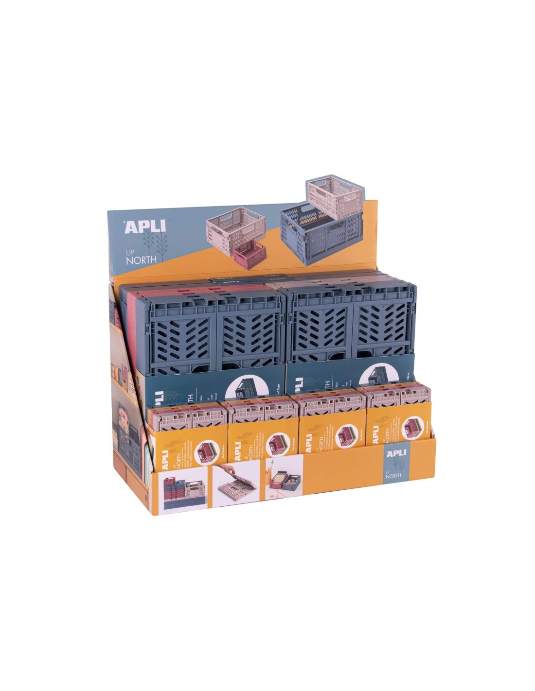Apli Up North Expositor de 26 Cajas de Plastico Plegables y Apilables - 2x 43x29x16cm-8x 29x21x21cm y 16x 14x10x6cm - Ideal