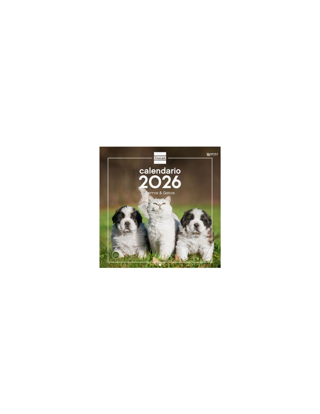 Finocam Calendario de Pared - Anual 2026 - Imagenes Variadas - 300x300mm - Espacio para Escribir - Tematica de Perros y Gatos