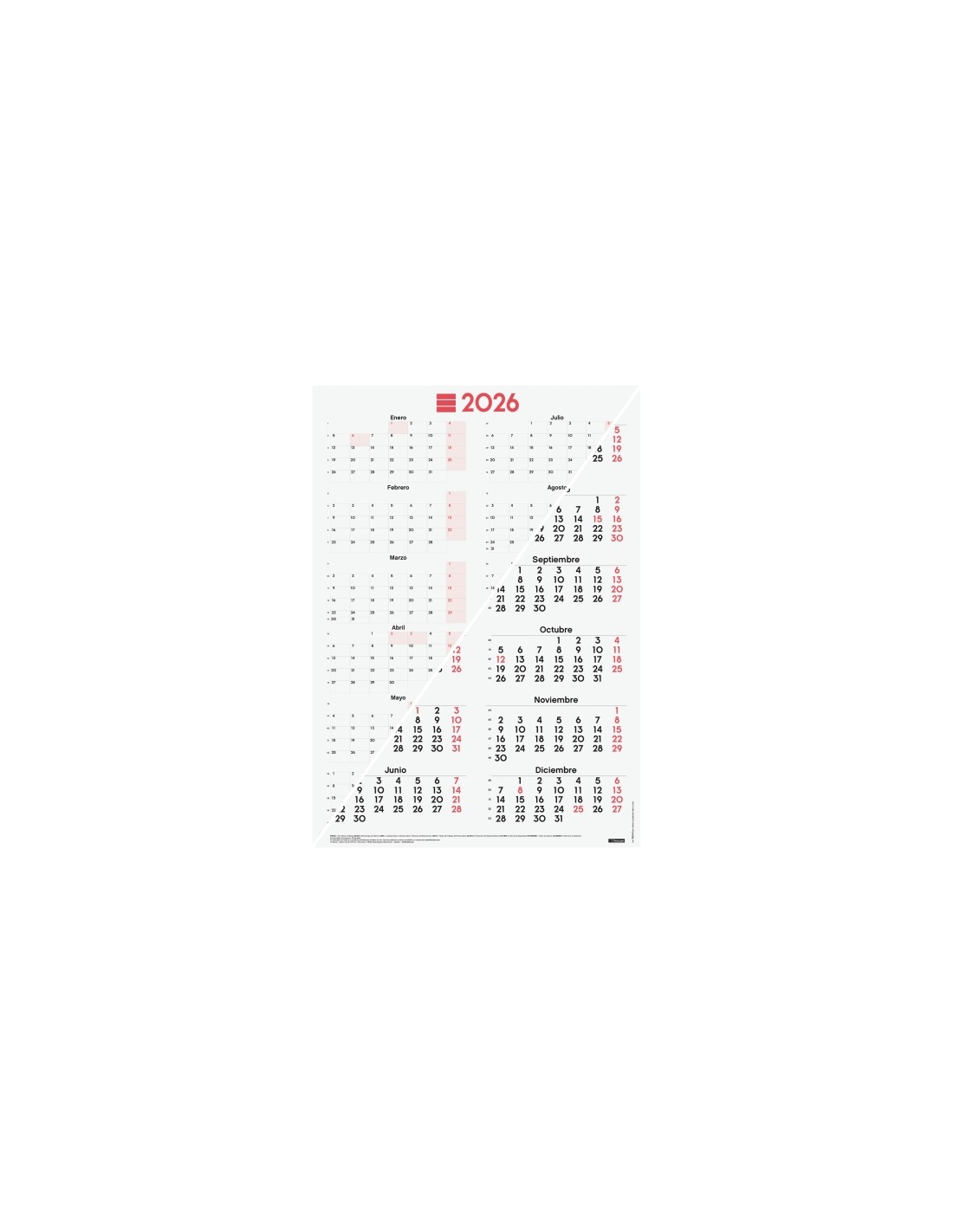 P ster calendario con papel de gramaje muy alto. Doble funcionalidad a escoger: en una cara, los meses del a o con n ºmeros grandes, y en la otra cara, con espacio diario para anotaciones. Ideal para disponer en la pared de la oficina o el hogar. Caracter sticas: -Periodo: Enero 2026 -Diciembre 2026 (12 meses) -Contenido: El p ster contiene informaci n de utilidad: festivos nacionales, d as se alados y cambios de estaci n. -Caracter sticas destacables: Los art culos Finocam est n dise ados para optimizar tu organizaci n personal, haciendo tu vida m s pr ctica, c moda y a la vez m s bella. -Duraci n agenda/calendario: 12 meses (enero-diciembre) -Materiales principales: Papel. -Gramaje del papel: 170g/m -Papel: Papel FSC ecol gico libre de cloro elemental y de cido, fabricado mediante la utilizaci n de energ as limpias, con el 100 de celulosa controlada, y bajo los certificados de calidad ISO9001:2015 y medio ambiente ISO14001:2015, cumpliendo as la normativa ISO9706 sobre la permanencia del papel. El Forest Stewardship Council (FSC ) es una organizaci n no gubernamental, independiente, sin nimo de lucro, establecida para promover una gesti n forestal ambientalmente responsable, socialmente beneficiosa y econ micamente viable en los bosques de todo el mundo. -Peso: 70g -Medidas exteriores: 485.0x0.1x680.0mm