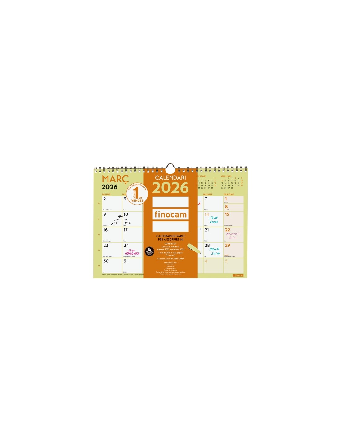 Calendario de Pared para Escribir 2026 de la marca Finocam, dise ado para organizar el a o con informaci n sobre festivos, fases lunares y otros datos ºtiles. Incluye 12 meses principales y meses reducidos del a o anterior, elaborado en papel ecol gico y con materiales de calidad. Caracter sticas: -Periodo: Enero 2026 -Diciembre 2026 (12 meses) Sep.-Dic. 2025 (4 meses) reducidos -Contenido: La anualidad del calendario incluye la informaci n relativa a: onom stica, festivos nacionales, festivos de las CC. AA., d as se alados, fases lunares y cambios de estaci n. Detr s de la hoja de cada mes se puede consultar el calendario anual. El calendario dispone tambi n de otros contenidos extra: calendarios reducidos de septiembre a diciembre del a o anterior, calendario anual del a o y del a o siguiente, planning anual, listado de festivos de las CC. AA. y de las capitales de provincia e inicios de los a os nuevos chino, musulm n, ortodoxo y hebreo. -Caracter sticas destacables: Los art culos Finocam est n dise ados para optimizar tu organizaci n personal, haciendo tu vida m s pr ctica, c moda y a la vez m s bella. -Duraci n agenda/calendario: 12 meses (enero-diciembre) 4 meses reducidos del a o anterior -Materiales principales: Papel y espiral doble met lica. -Gramaje del papel: 120g/m -Papel: Papel FSC ecol gico libre de cloro elemental y de cido, fabricado mediante la utilizaci n de energ as limpias, con el 100 de celulosa controlada, y bajo los certificados de calidad ISO9001:2015 y medio ambiente ISO14001:2015, cumpliendo as la normativa ISO9706 sobre la permanencia del papel. El Forest Stewardship Council (FSC ) es una organizaci n no gubernamental, independiente, sin nimo de lucro, establecida para promover una gesti n forestal ambientalmente responsable, socialmente beneficiosa y econ micamente viable en los bosques de todo el mundo. -Peso: 150g -Medidas exteriores: 297x10x212mm