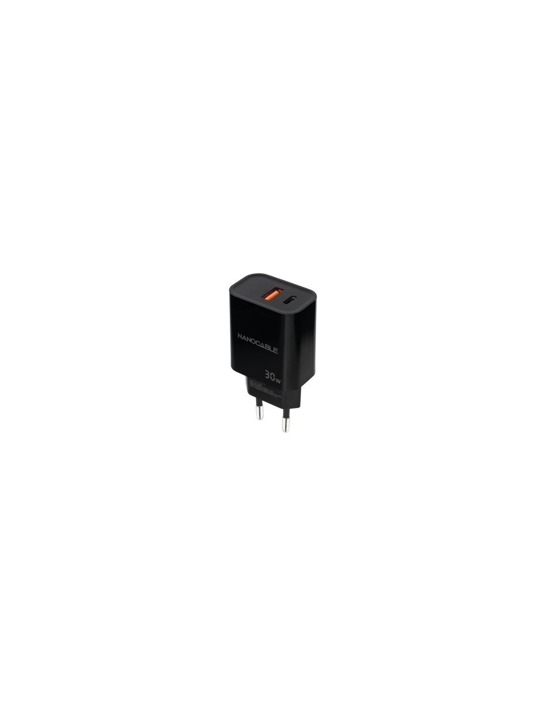 Nanocable Cargador de Pared USB-C PD-USB-A QC 30W - Color Negro