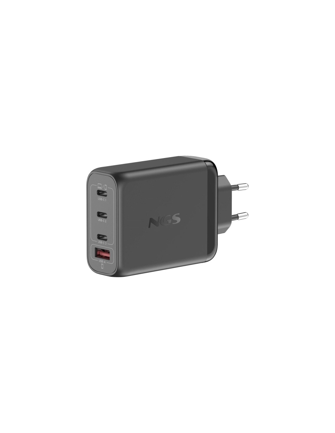 NGS Bud 140W Cargador Universal de Pared 140W Ultrarapido - GaN - 3x USB-C PD & PPS-1x USB-A QC 3.0 - Color Negro