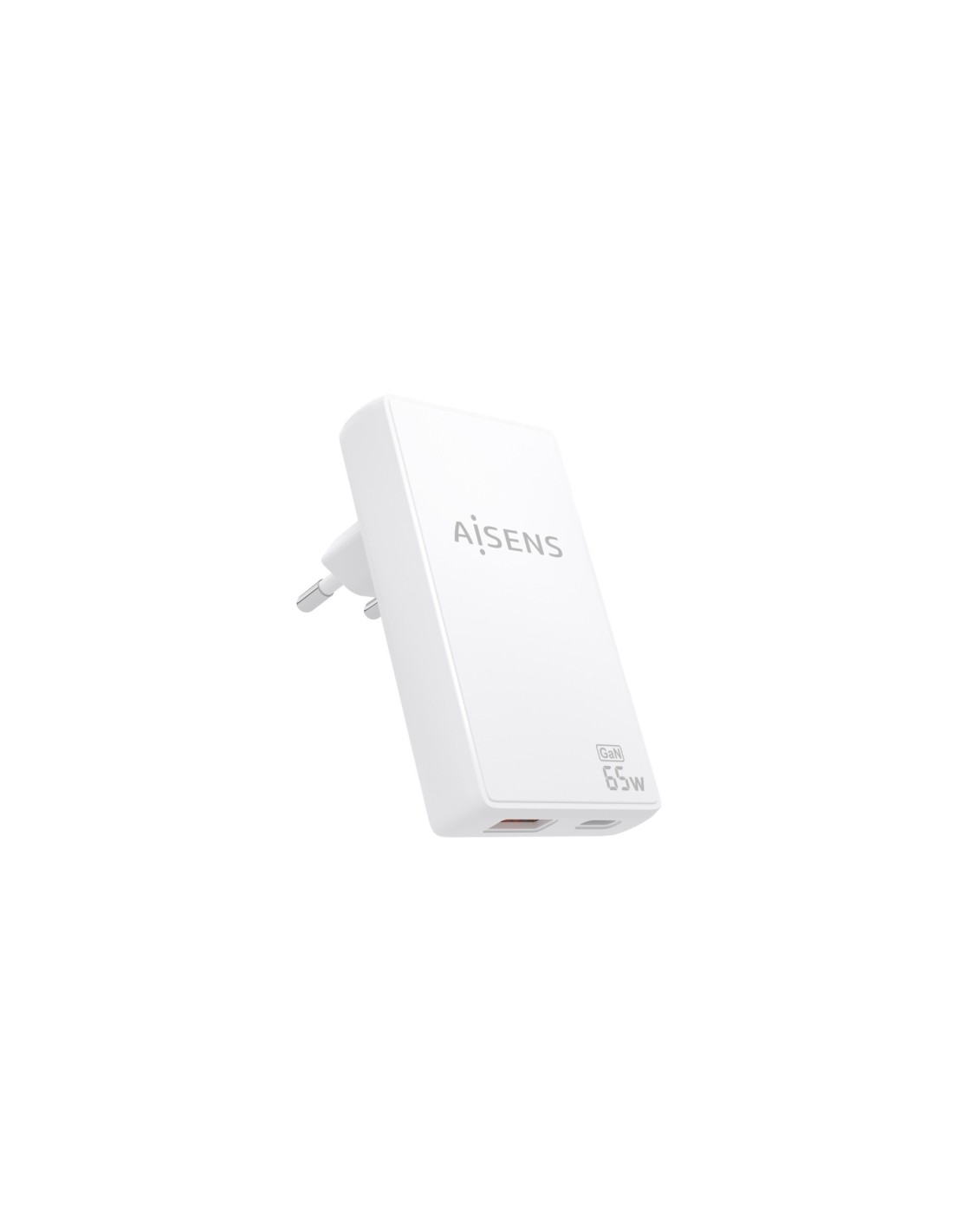 Aisens Cargador GaN Ultra Delgado 65W - 1xUSB-C PD3.0 QC4.0 - 1xUSB-A QC3.0 - Tecnologia AI - Color Blanco