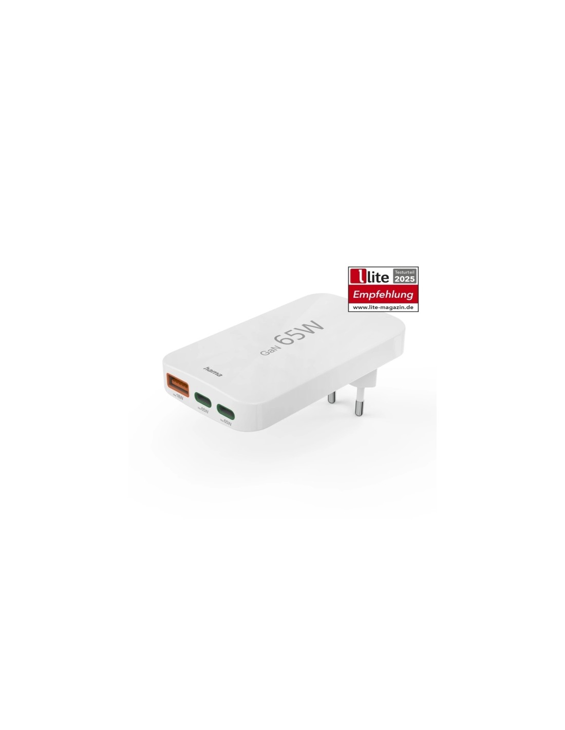 Hama Cargador de Pared - Potencia 65W - 2x USB-C - USB-A - Power Delivery - Qualcomm - Color Blanco