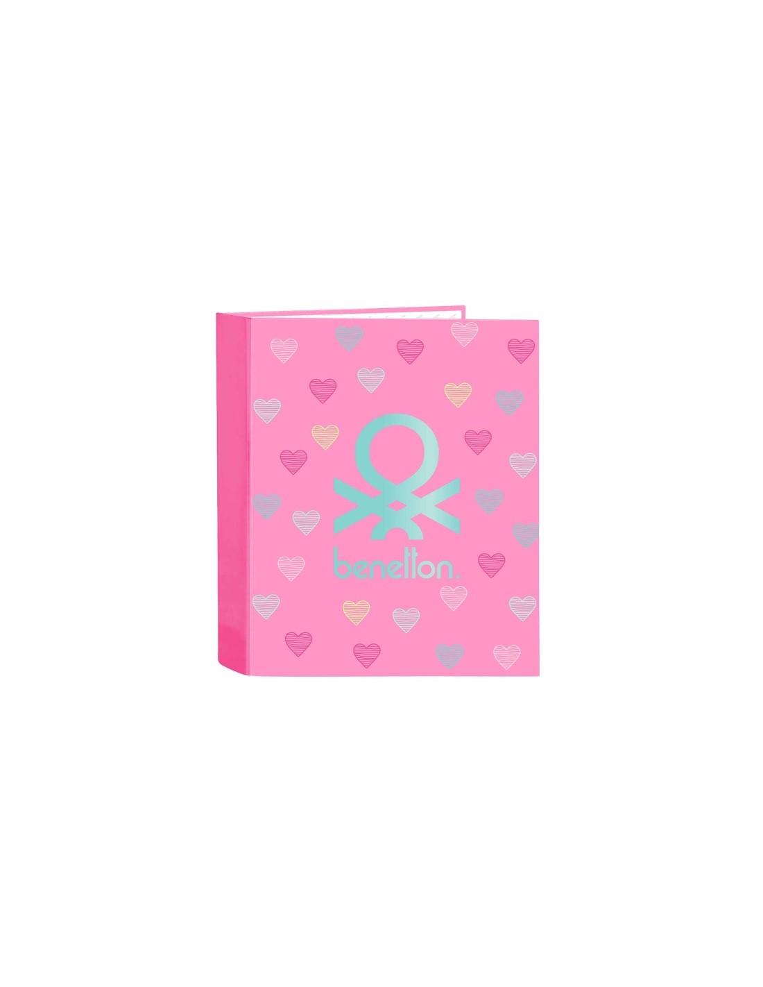 Safta Benetton Heart Carpeta con 4 Anillas 40mm - Tapas Duras Forradas - Formato Folio - 270x60x330mm - Color Rosa
