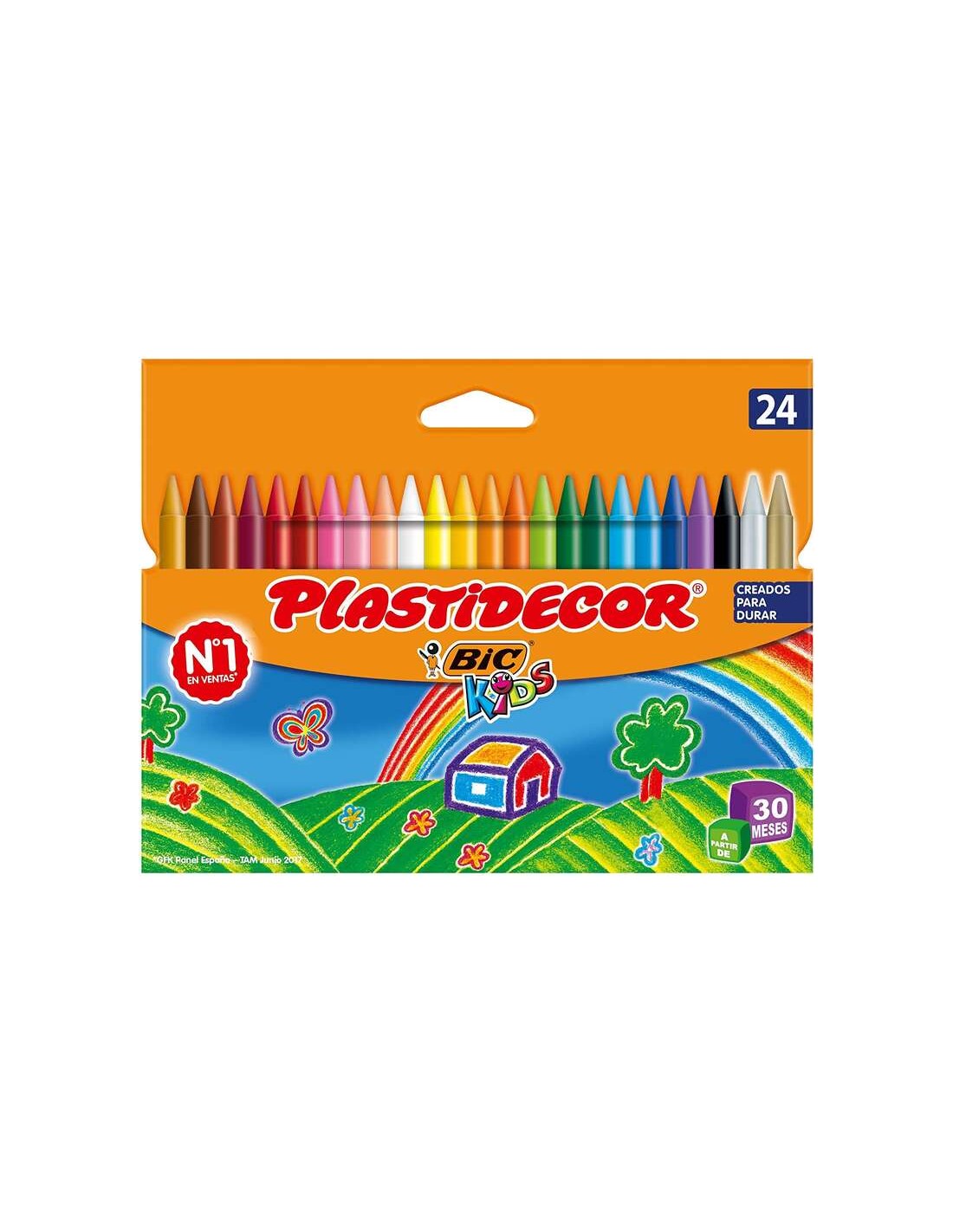 Bic Kids Plastidecor Caja de 24 Lapices de Cera - Extraresistentes - Facil de Sacar Punta - No Mancha