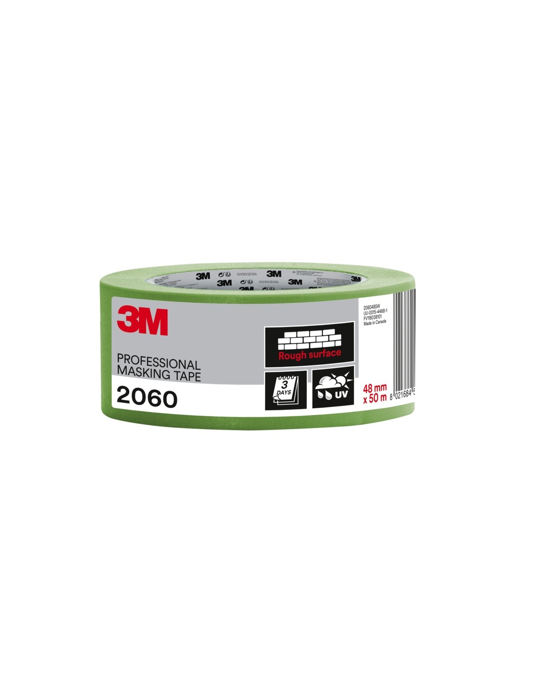 La cinta de enmascarar profesional 3M 2060 es una soluci n confiable y eficiente dise ada para ofrecer un acabado limpio y preciso en diversas aplicaciones de pintura y protecci n de superficies. Especialmente indicada para superficies rugosas como hormig n y madera, esta cinta garantiza una adherencia superior y una f cil remoci n sin dejar residuos, permitiendo resultados profesionales en cada uso. Caracter sticas: -Excelente adherencia en superficies rugosas como hormig n y madera -Dise ada para aplicaciones de enmascarado en trabajos de pintura -Remoci n f cil sin dejar residuos ni da ar la superficie -Resistente a la humedad y a condiciones ambientales variables -Permite l neas n tidas y precisas en el enmascarado -Ideal para proyectos de construcci n, renovaci n y mantenimiento