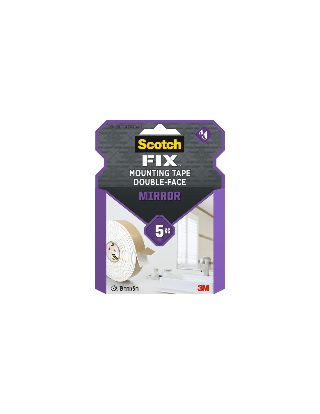 Scotch-FIX Cinta de montaje de espejos. Esta cinta dise ada para usarse en entornos h ºmedos interiores y es ideal para espejos, cer mica, azulejos, madera pulida, metal, vidrio y paredes pintadas. La cinta de montaje de espejos de doble cara Scotch-FIX es ideal para montar espejos y otros elementos en zonas interiores h ºmedas de forma permanente. Esta cinta de espuma de doble cara adaptable proporciona una uni n r pida y permanente en superficies de interior y de exterior, incluidas paredes pintadas, metal, azulejos, cer mica y la mayor a de los pl sticos. Su uni n fuerte puede sostener sin clavos ni martillo gracias al adhesivo industrial de 3M de calidad superior. Esta cinta es resistente a la humedad, lo que la hace ideal para el montaje discreto de espejos (incluidas baldosas de espejo con reverso met lico y sin marco) y otros objetos en zonas de interior h ºmedas como ba os y cocinas. Instrucciones de aplicaci n: 1. Limpia la superficie con alcohol y deja secar. 2. Aplica la cinta como se muestra en la imagen. 3. Presiona firmemente durante 60 segundos. PRECAUCI N: No colgar en zonas donde se pueden producir lesiones si el objeto colgado llega a caer. Este producto tiene un adhesivo permanente y puede provocar da os si se retira. CONSEJOS DE USO: No lo utilice en paredes con papel pintado ni en superficies delicadas. Aseg ºrate de que la superficie sea plana y lisa y que pueda soportar un objeto colgado. Toda la superficie de la cinta debe adherirse por completo a ambos lados. Temperatura de aplicaci n: 10 C -37 C. Aspectos destacados -PARA USO EN INTERIORES EN ENTORNOS H MEDOS: Esta cinta de espuma de doble cara muy adaptable es ideal para montaje en entornos h ºmedos de espejos y otros elementos sobre cer mica, azulejos, madera pulida, metal, vidrio y paredes pintadas -CAPACIDAD DE CARGA DE HASTA 5 KG: Esta cinta de montaje de doble cara puede soportar hasta 5 kg (1 kg/20 cm). Es resistente a la humedad, ideal para montar espejos, azulejos, accesorios de ba o y otros art culos en reas interiores h ºmedas como ba os y cocinas -RESISTENCIA T RMICA: La cinta de montaje para espejos en interiores Scotch-FIX resiste temperaturas que oscilan entre 0 C y 70 C -ADHESIVO: Adhesivo de espuma de doble capa de primera calidad dise ado para fijar de forma permanente art culos peque os y medianos a la mayor a de las superficies en zonas h ºmedas -F CIL DE USAR: No se necesitan herramientas ni taladros para la aplicaci n de esta cinta de montaje de doble cara 3M. Ideal para soluciones de montaje r pidas y sencillas -GU A DE APLICACI N: Comprobar que la superficie sea plana y lisa y que pueda soportar objetos colgados. Toda la superficie de la cinta debe adherirse por completo a ambos lados. Temperatura de aplicaci n de 10 C a 37 C. Limpiar la superficie con alcohol y dejar secar. Aplicar la cinta. Presionar firmemente durante 60 segundos -ADVERTENCIA: No colgar en zonas donde se pueden producir lesiones si el objeto colgado llegara a caer. Este producto tiene un adhesivo permanente y puede provocar da os si se retira. No utilizar en paredes con papel pintado ni en superficies delicadas Especificaciones: -Material: Espuma -Tipo de cinta: Doble cara -Adhesivo: Acr lico
