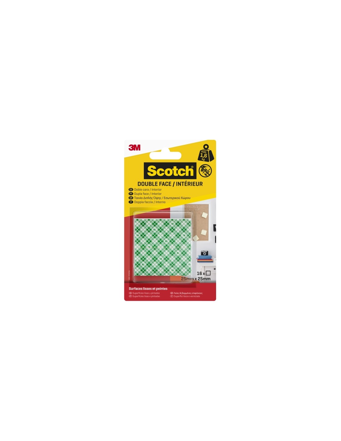 Scotch Pack de 16 Adhesivos de Montaje - 25x25mm - Uso en Interior - Cuadrado - Color Blanco