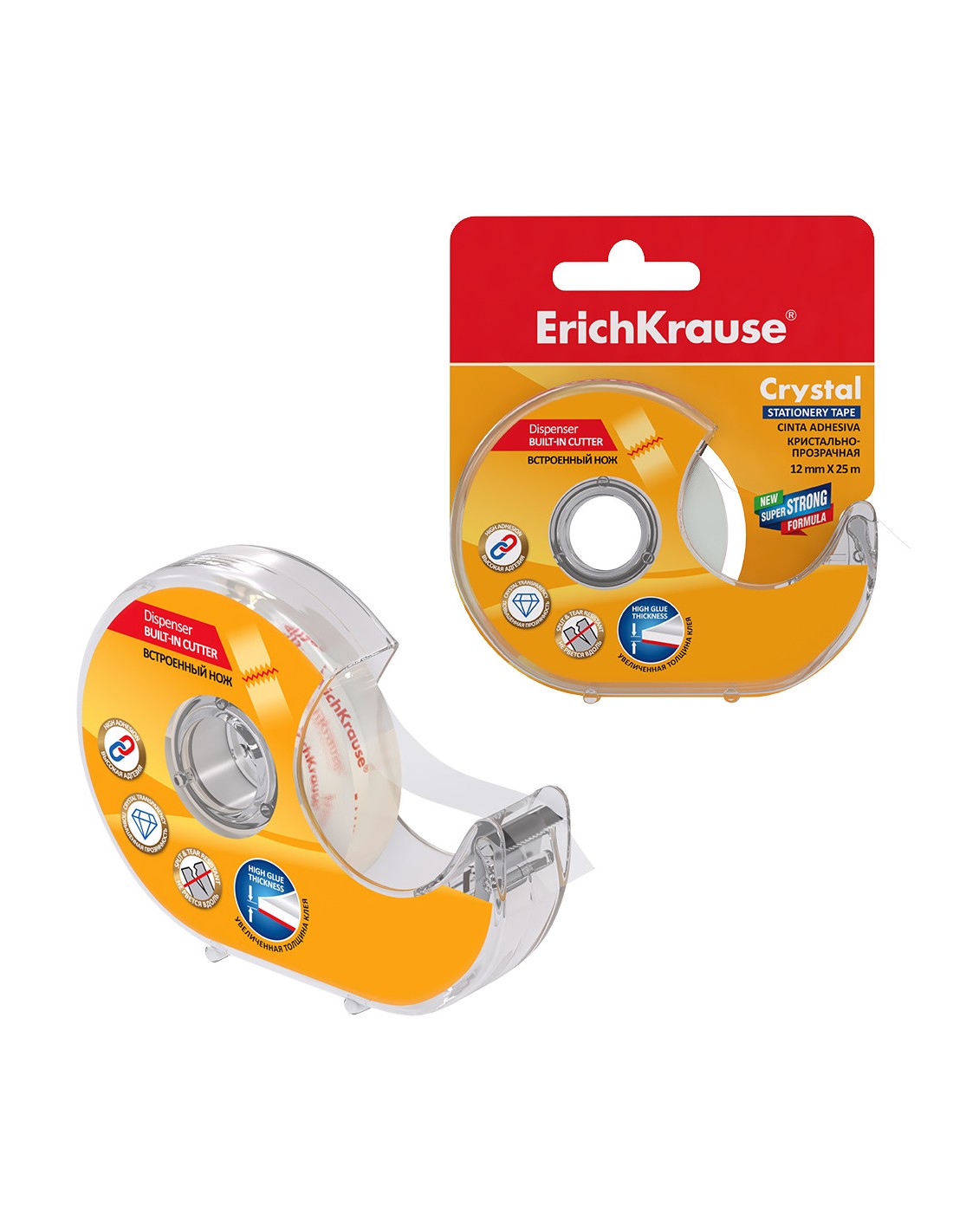 Erichkrause Cinta Adhesiva con Aplicador Crystal - 12mmx25m - Facil de Usar - Transparente