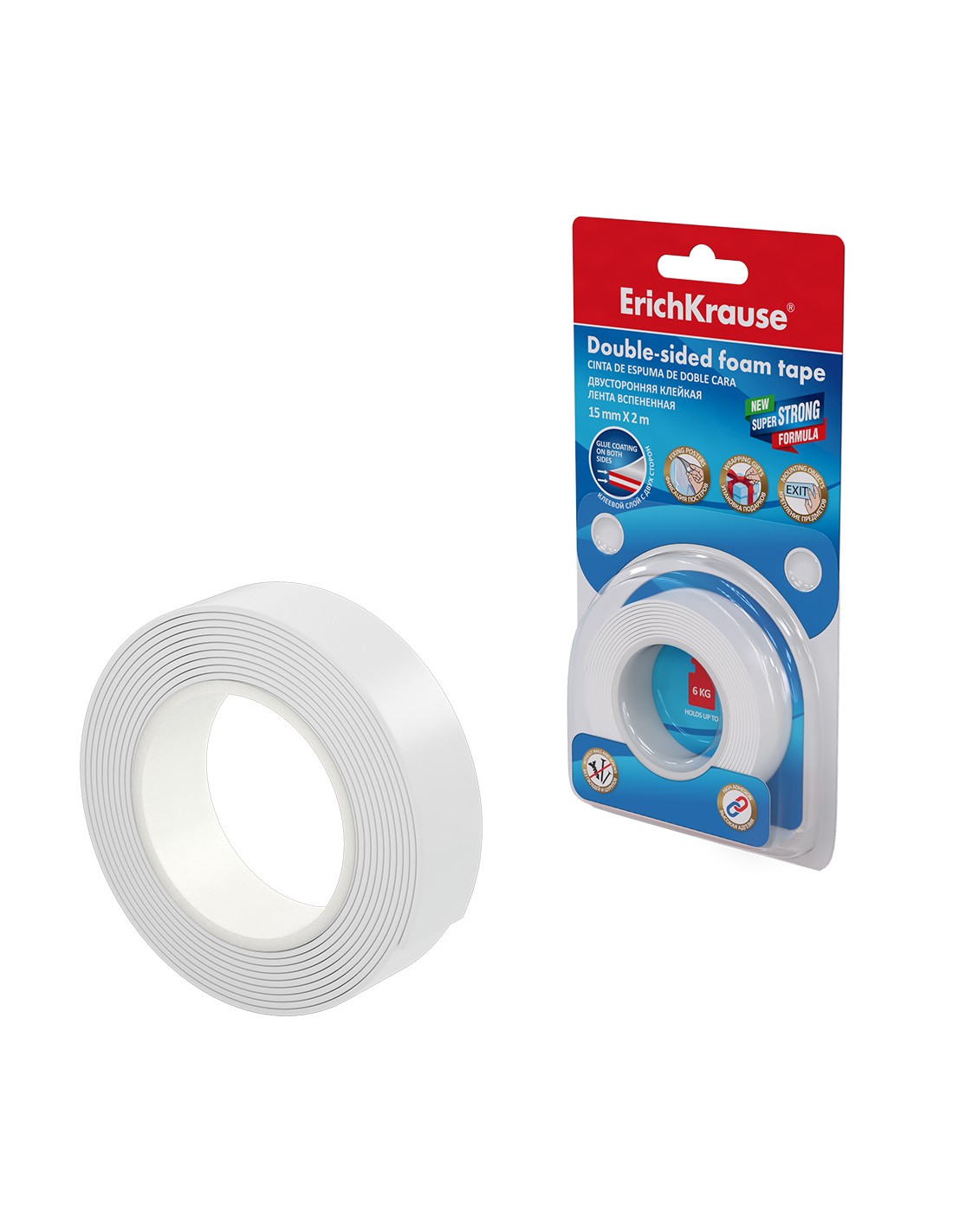 Erichkrause Cinta Adhesiva de Doble Cara a Base de Espuma - 1mmx15mmx2m - Color Transparente