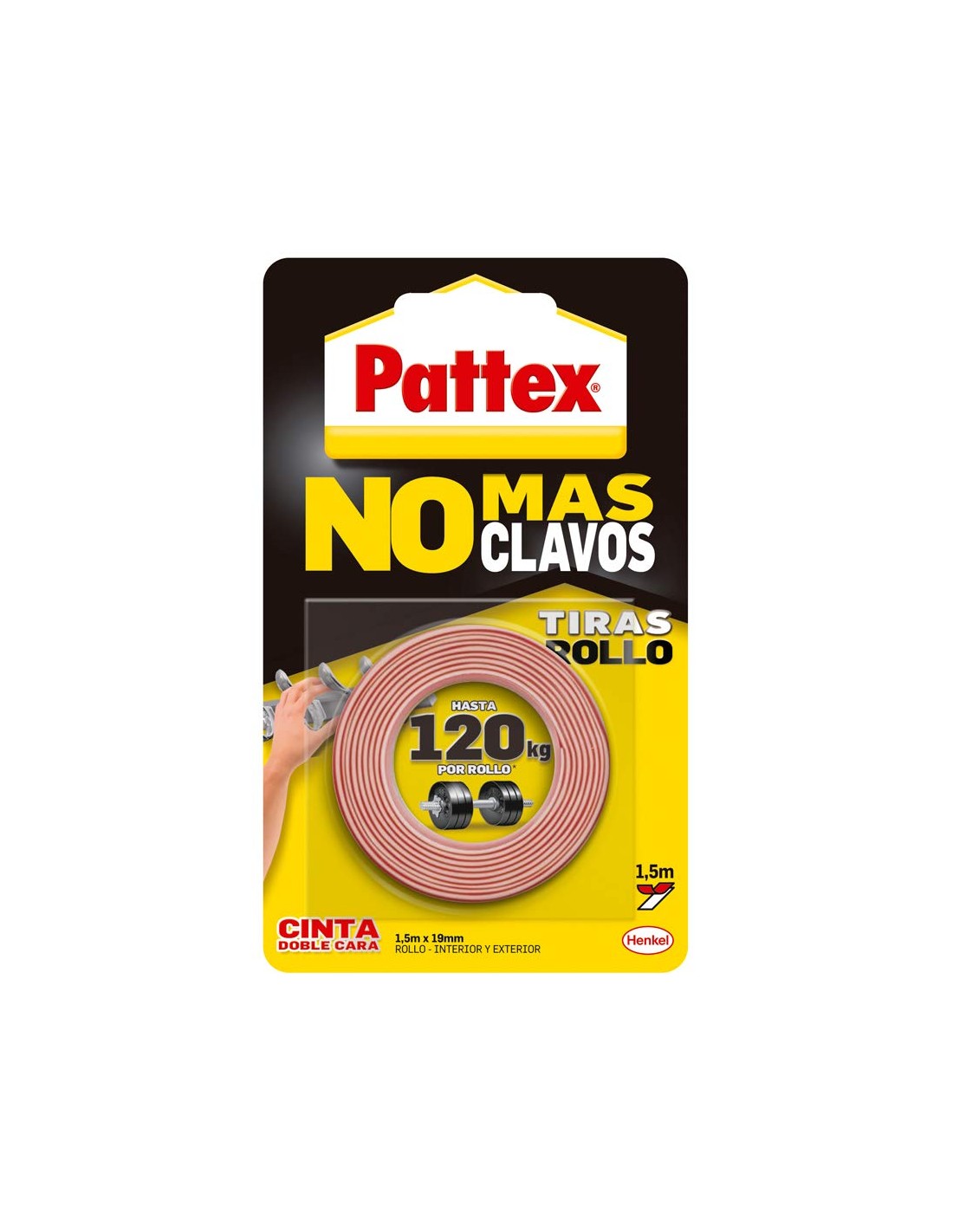 No Mas Clavos en formato de cinta doble cara es un adhesivo que elimina el uso de los clavos y herramientas. Te permite un ambiente de trabajo cómodo y limpio con resultados más rápidos y fáciles. Permite fijar con gran fuerza, de forma práctica y limpia pequeños objetos. Esta generación de doble cara permite fijar objetos lisos sobre todo tipo e soportes planos, tanto en interior como en exterior.