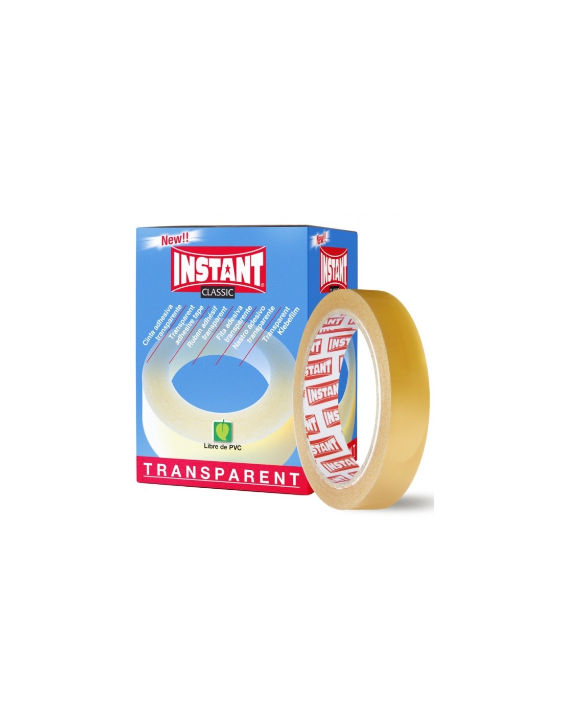 Instant Classic Cinta Adhesiva Transparente 19mm x 66m - Libre de PVC - Transparente