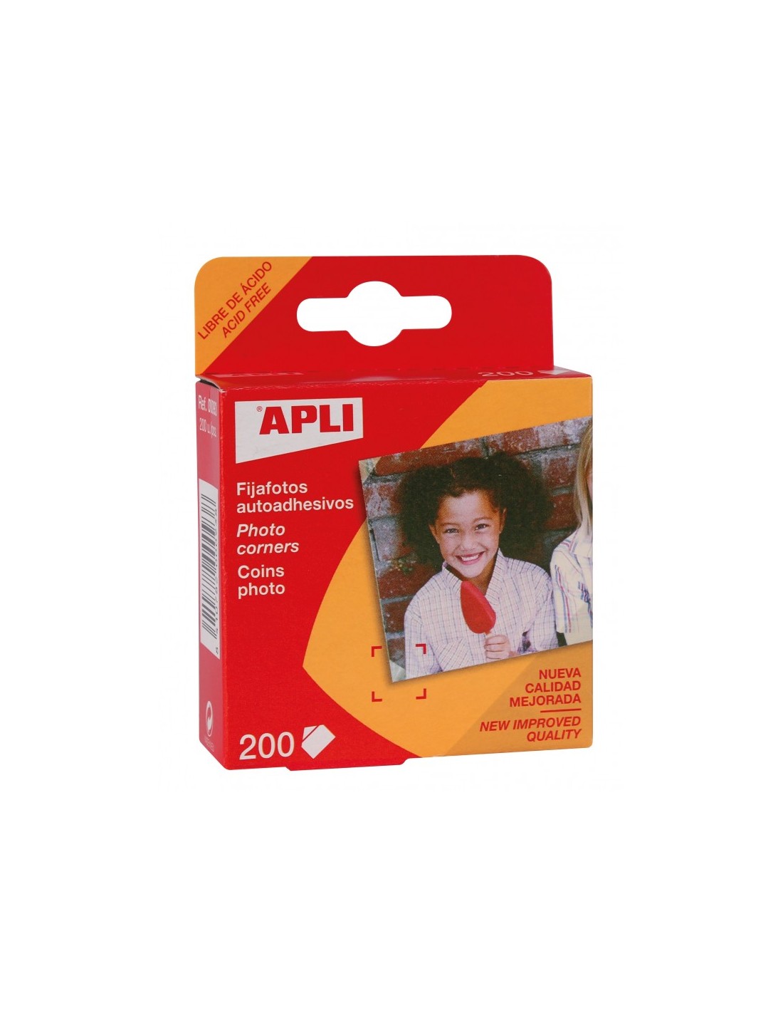 Apli Pack de 200 Fijafotos Autoadhesivos 18 x 17 mm - Solapa Triangular para Cantos de las Fotos - Facil Adherencia al Papel