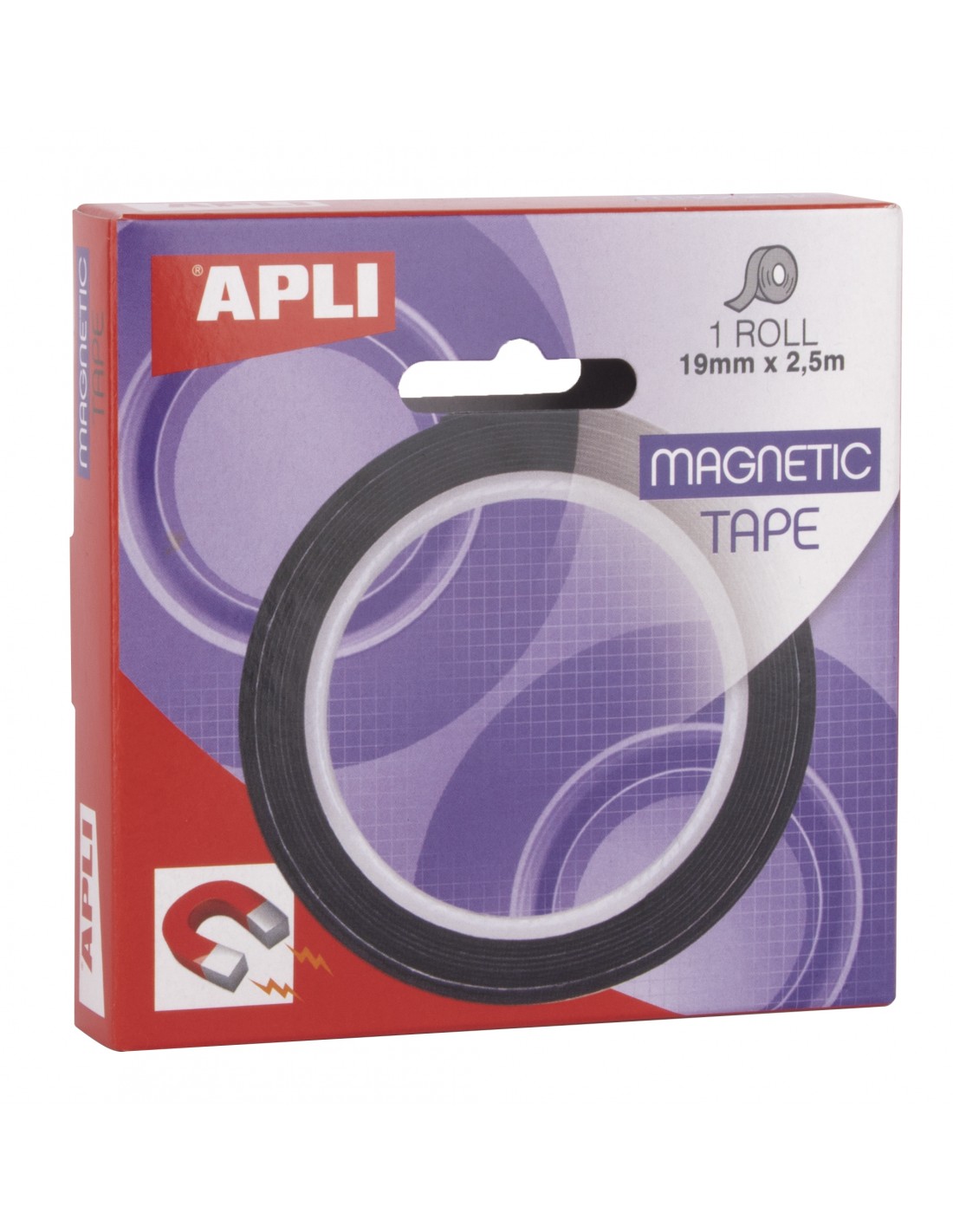Apli Cinta Adhesiva Magnetica 19mm x 25m - Facil de Cortar - Adhesion Fuerte - Versatil y Reutilizable - Negra