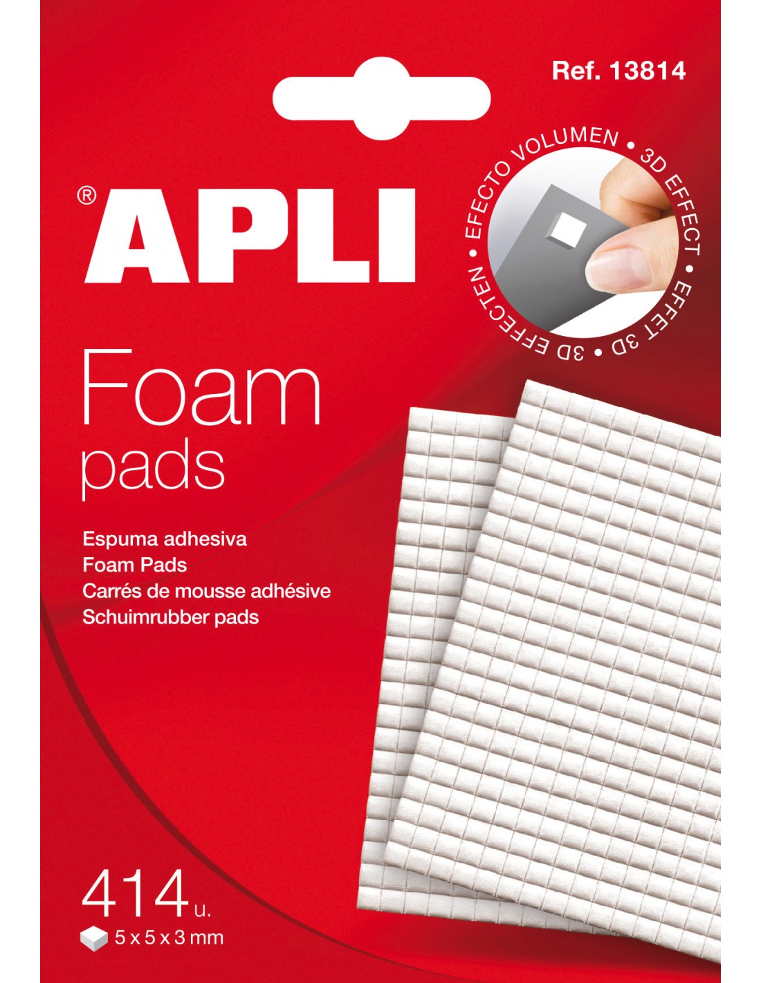 Apli Adhesivo Espuma 3D Precortado 5x5x3mm - Facil Aplicacion - 414 Unidades - Blanco