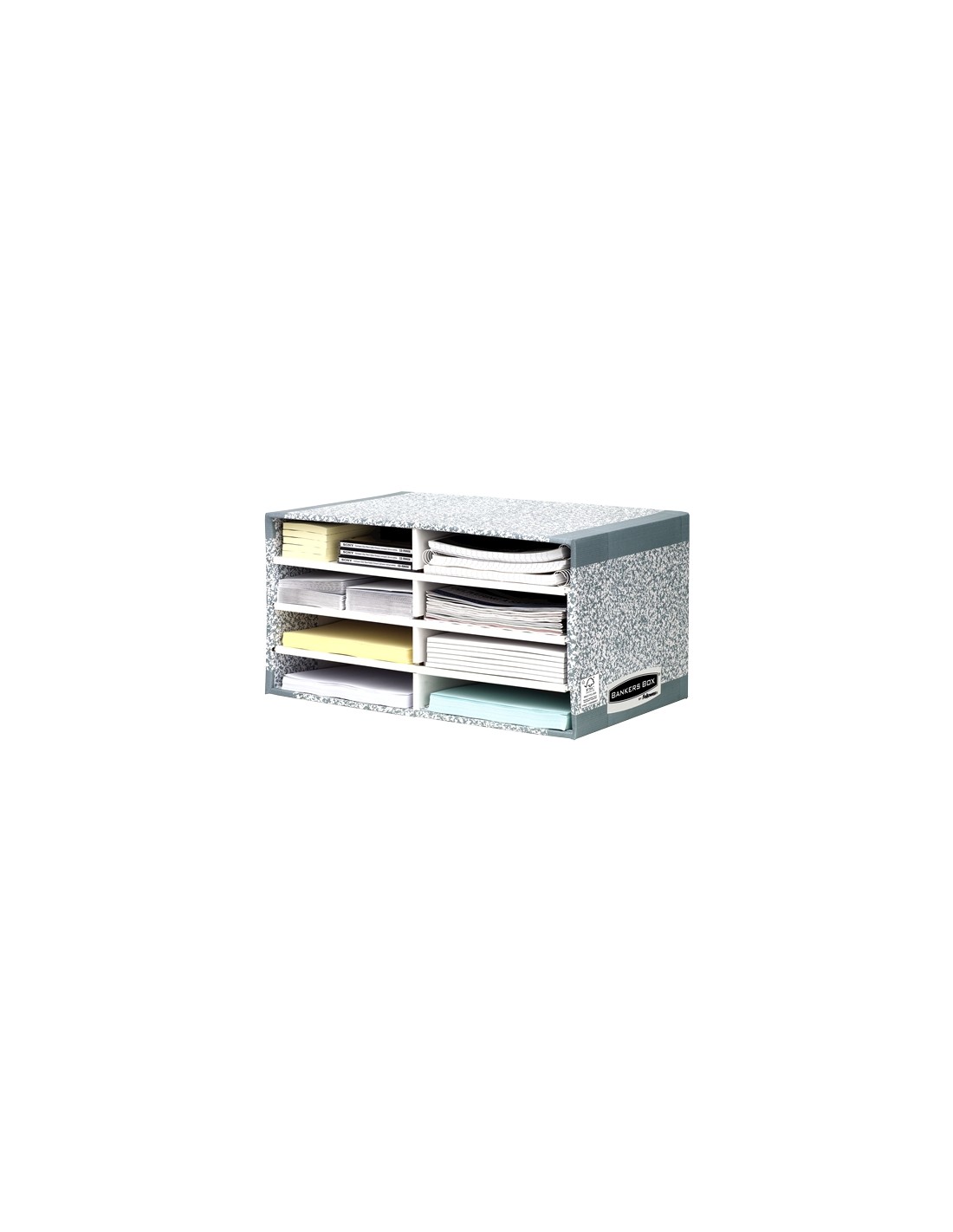 Fellowes Bankers Box Clasificador de Sobremesa - Montaje Automatico Fastfold - Carton Reciclado Certificacion FSC - Color Gris
