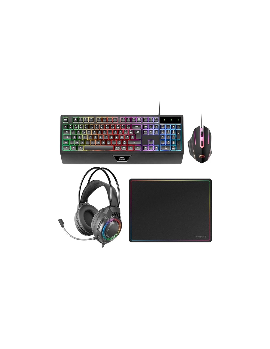 Mars Gaming MCP124PRO Combo Pack Gaming 4en1 - Teclado Hibrido H-Mech - Disposicion Portuguesa QWERTY PT - Raton 3200dpi -