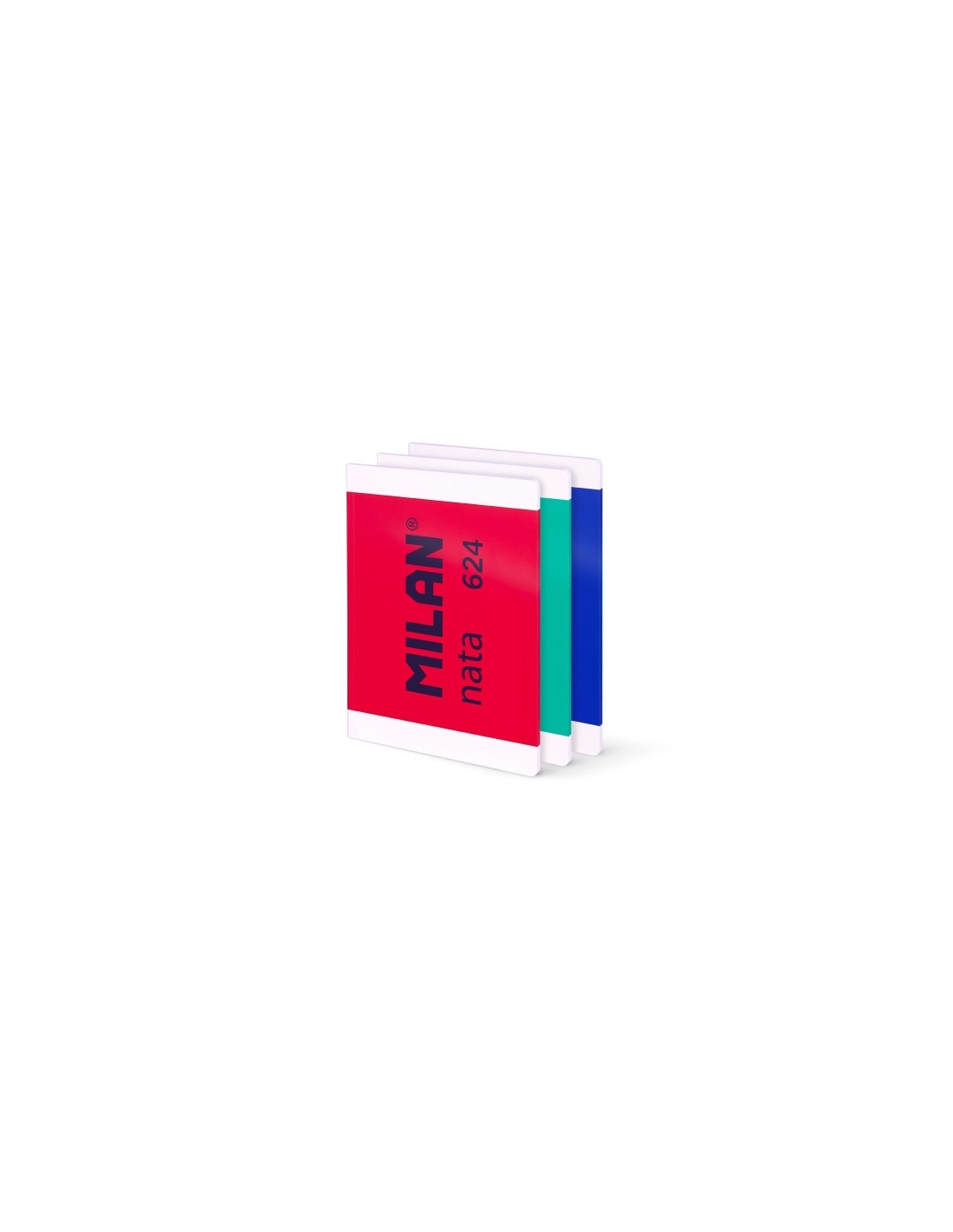 Libretas A4 encoladas (sin grapas) y tapa flexible. 48 hojas de papel liso, en blanco. Papel de 95 gr/m de alta calidad, microperforado. Cubierta de cartón flexible con dos acabados distintos, brillante y mate. Colección MILAN nata 624 since 1918, inspirada en los colores y diseño originales de las gomas de borrar MILAN, fabricadas en España desde 1918. Características: -Hojas microperforadas para poder arrancarlas fácilmente y archivarlas -Papel de 95 gr/m2, de alta calidad. -Microperforado Especificaciones: -Hojas: 48 -Formato: A4 -Rayado: Liso -Microperforado: Si -Color: Azul, rosa y verde