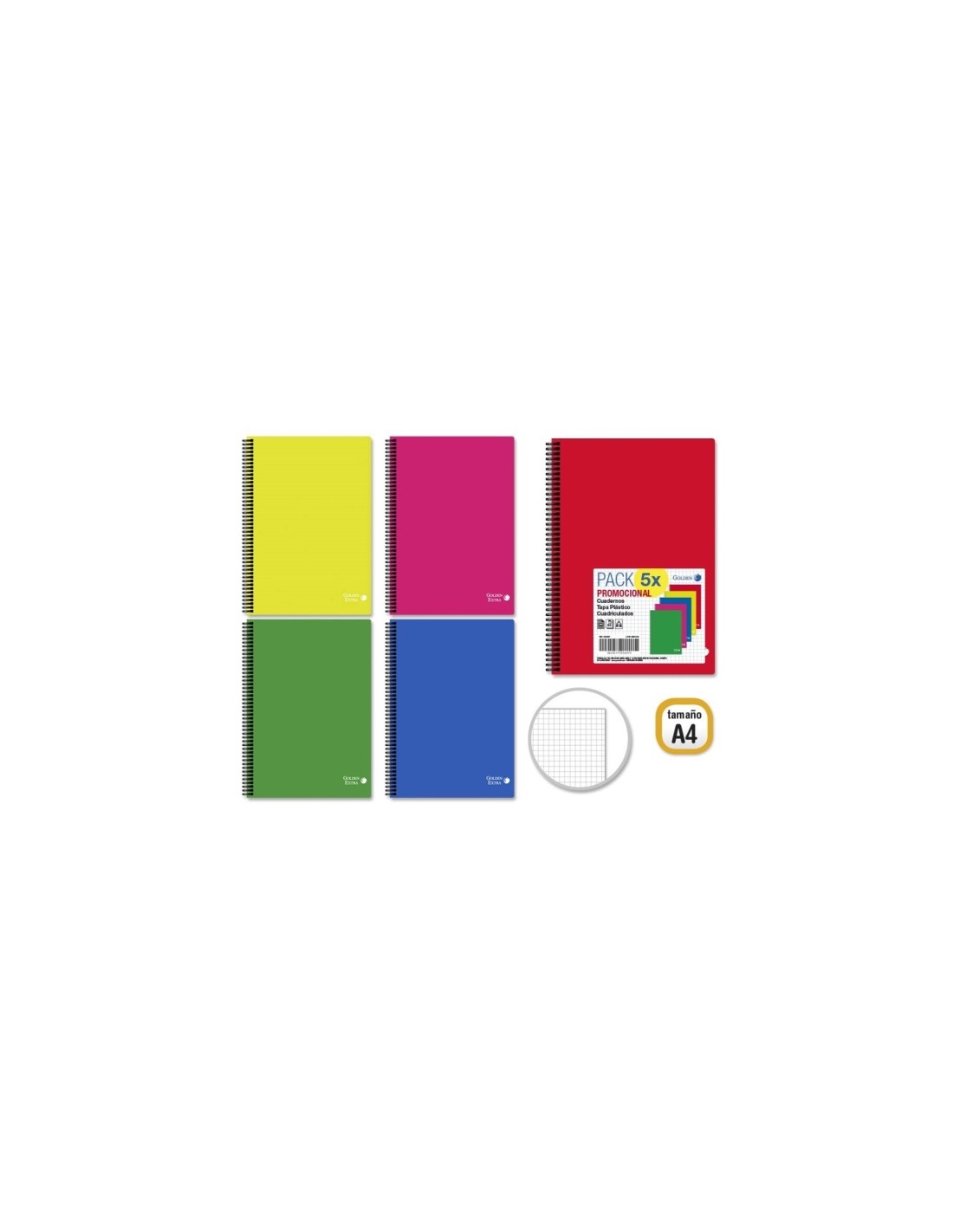 Golden Basic Pack de 5 Cuadernos Folio 80 Hojas 90gr Cuadricula 4x4 Características: -80 Hojas 90gr -Tamaño: A4 -Cuadricula 4x4 -Tapa de polipropileno -Colores Surtidos