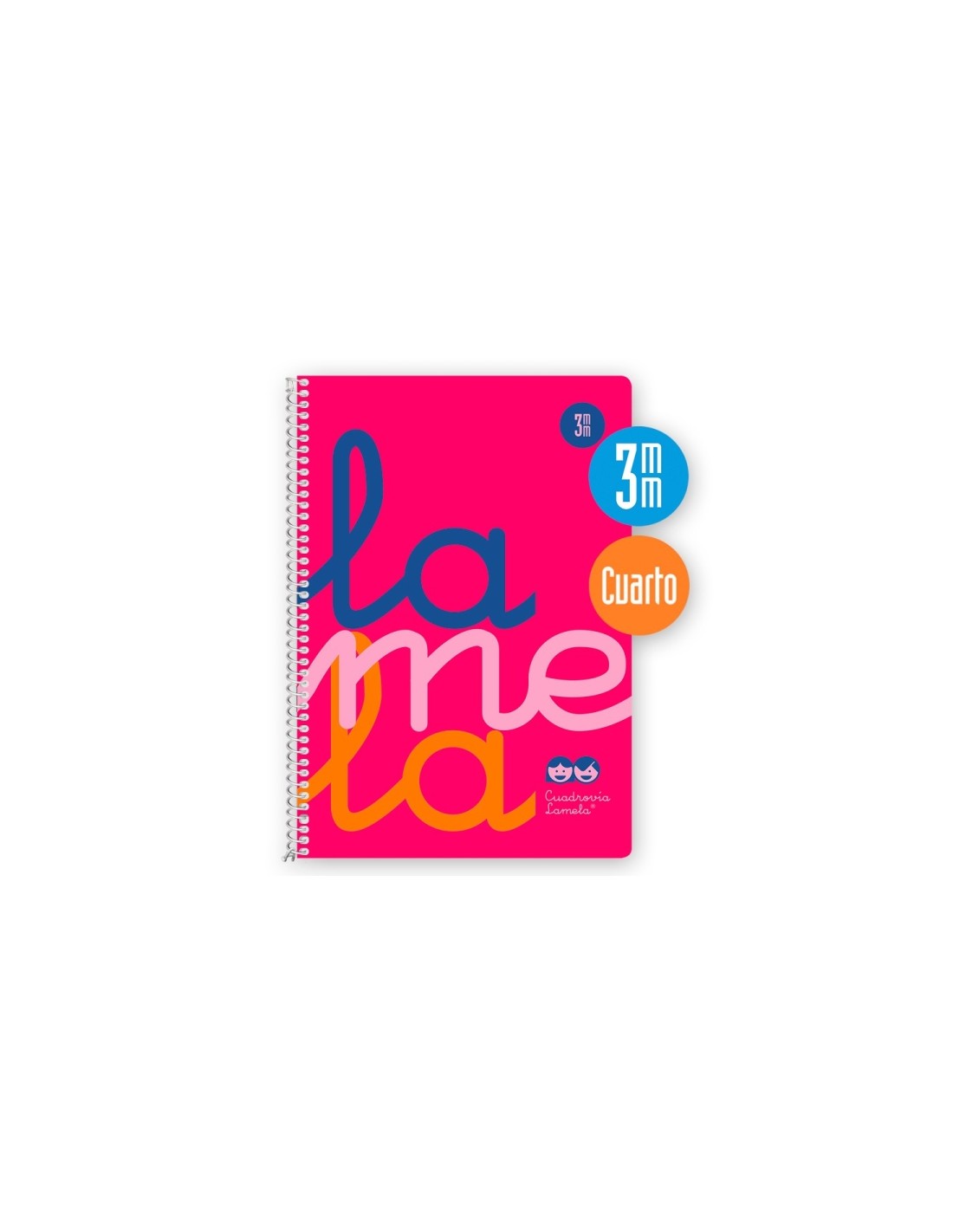 Cuaderno de cuarto con cubierta de polipropileno fl ºor rosa y 80 hojas de papel blanco extra de 90g/m2. El rayado cuadrov a de 3mm permite una escritura clara y uniforme. Caracter sticas: -Espiral: sencillo con lazo vuelto, lacado blanco. -Papel: Offset blanco extra de 90g/m2 con margen. -Color: ROSA -Cubierta: Polipropileno fl ºor -Tama o: Cuarto -Hojas: 80 hojas -Rayados con CUADROV A en tama os de 3 mm
