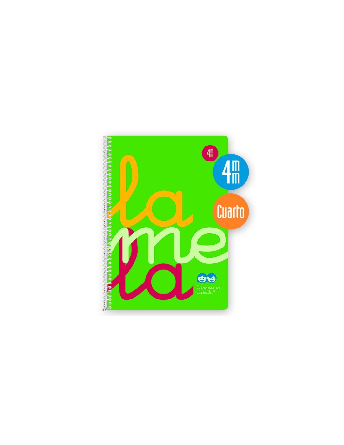 Cuaderno de cuarto con cubierta de polipropileno fl ºor verde y 80 hojas de papel blanco extra de 90g/m2. El rayado cuadrov a de 4mm permite una escritura amplia y clara. Caracter sticas: -Espiral: sencillo con lazo vuelto, lacado blanco. -Papel: Offset blanco extra de 90g/m2 con margen. -Color: VERDE -Cubierta: Polipropileno fl ºor -Tama o: Cuarto -Hojas: 80 hojas -Rayados con CUADROV A en tama os de 4 mm
