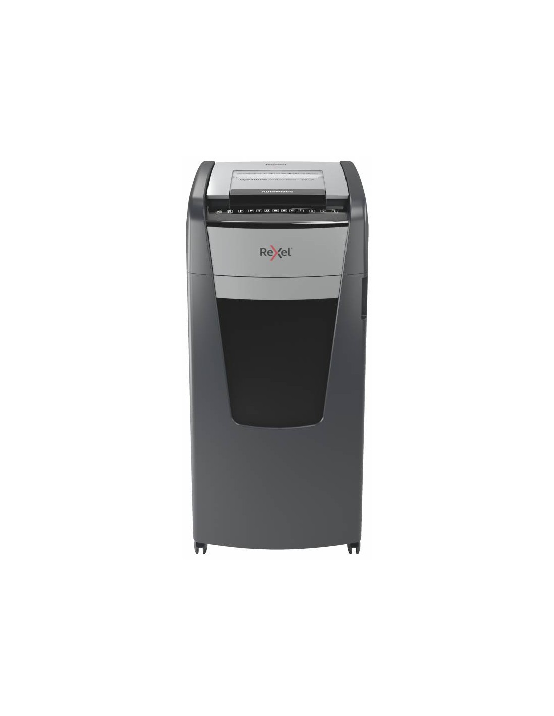 La Destructora automática Rexel Optimum AutoFeed 750X es un producto de alta calidad diseñado para destruir de manera eficiente y segura grandes cantidades de papel. Con su capacidad de destruir automáticamente hasta 750 hojas de papel A4 a la vez, esta destructora es ideal para oficinas y entornos de trabajo de alta demanda. Características: - Alimentación automática de hasta 750 hojas de papel A4 (80 grs.) a la vez. - Ranura manual de hasta 20 hojas. - Corte en partículas P-4 (4x36mm), garantizando la máxima seguridad en la destrucción de documentos. - Papelera con puerta con gran capacidad para 140l, lo que permite desechar una gran cantidad de papel sin necesidad de vaciarla constantemente. - Dispensador de bolsas de plástico para residuos en el interior de la puerta de la papelera, facilitando el reemplazo de la bolsa de manera cómoda y rápida. - Ruedas giratorias que permiten mover la destructora con facilidad en el lugar de trabajo. - Tecnología anti atascos que evita interrupciones durante el proceso de destrucción. - Capacidad para destruir tarjetas de crédito, grapas y clips, lo que la hace versátil y conveniente. - Tiempo de funcionamiento continuo de 240 minutos con enfriamiento del ventilador, lo que garantiza un rendimiento óptimo durante largos periodos de uso. - Modo de suspensión que se activa después de 3 minutos sin uso, ahorrando energía y prolongando la vida útil del producto. - Panel de control táctil con bloqueo de código pin para brindar máxima confianza y seguridad en el manejo de la destructora. - Nivel de ruido ultra silencioso de 55 dBA, lo que permite un ambiente de trabajo tranquilo y sin molestias. - Sensor de compartimento lleno con infrarrojos, que indica cuando la papelera está llena y necesita ser vaciada. - Garantía de 2 años, con garantía adicional de 2 años para el cútter, brindando tranquilidad y