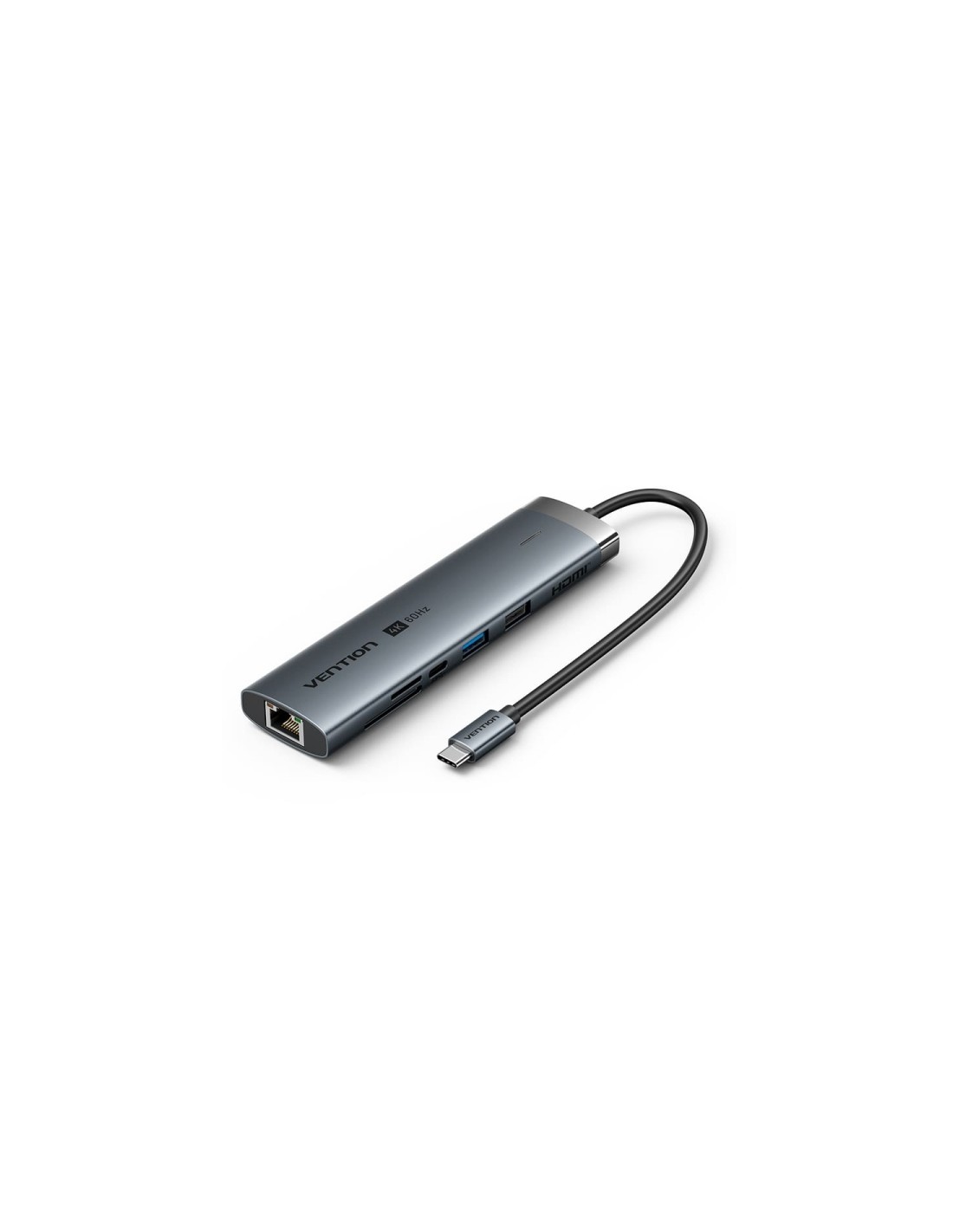 Vention Estacion de Docking 8 en 1 - 100W - Cable USB-C de 15cm Integrado - Ethernet RJ45 - HDMI 4K - 2xUSB-C - Tarjeta TF -