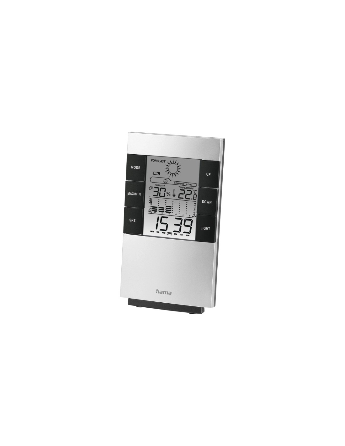 Hama Medidor de Temperatura y Humedad para Interior - Pantalla Digital - Reloj - Alarma - Prevision Meteorologica - Memoria