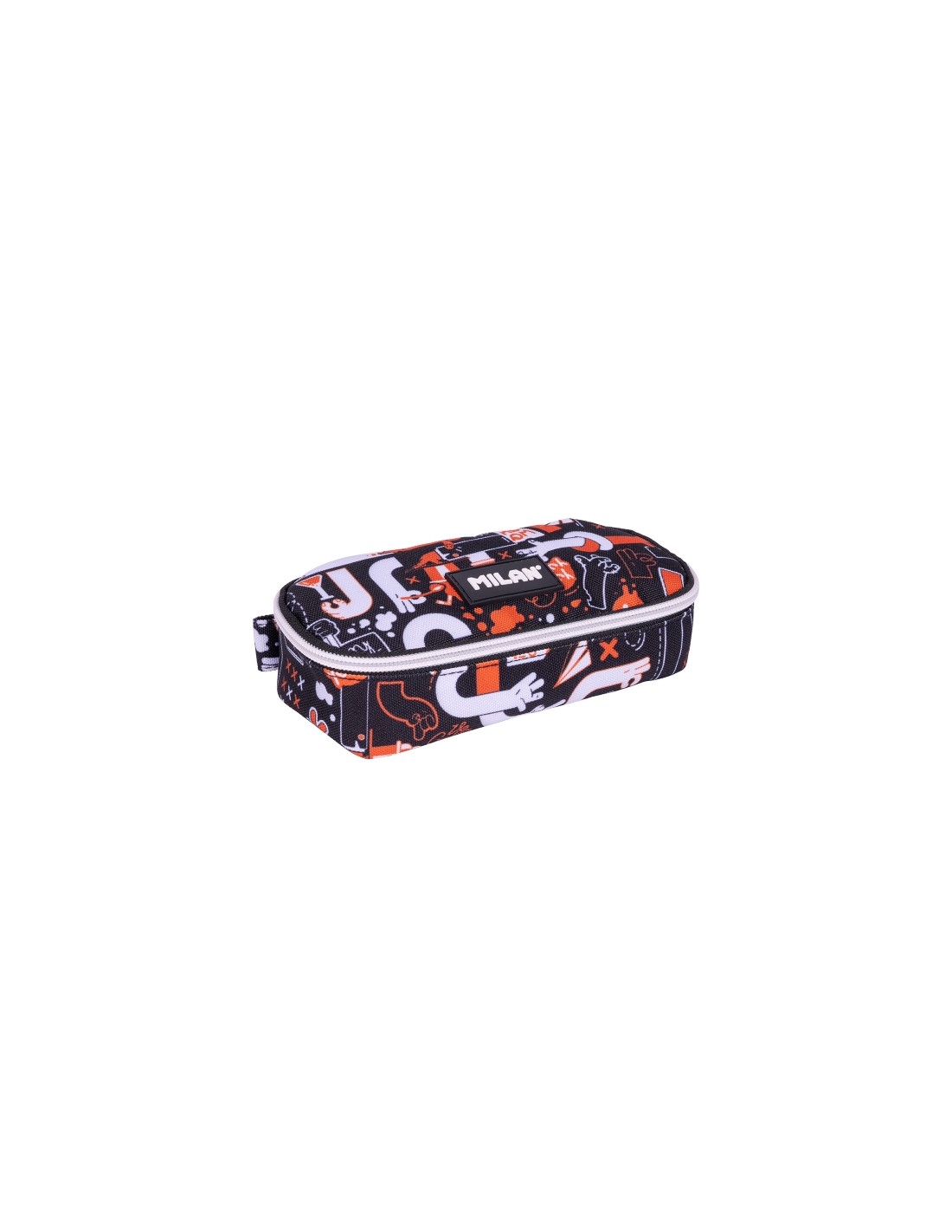 Estuche portatodo ovalado de la serie Fingers de Milan. Caracter sticas: -Estuche portatodo ovalado -Serie especial Fingers, marca Milan -Compartimento interior de malla -Organizaci n mejorada -Inspiraci n en gestos y juegos de manos -Colores: negro, naranja, blanco -Estampado llamativo, divertido y moderno -Material: poli ster resistente -Uso escolar pr ctico -Medidas aproximadas: 20.5cm largo, 9cm alto, 5.5cm profundidad